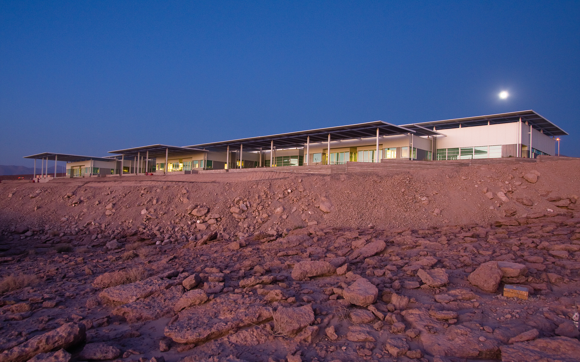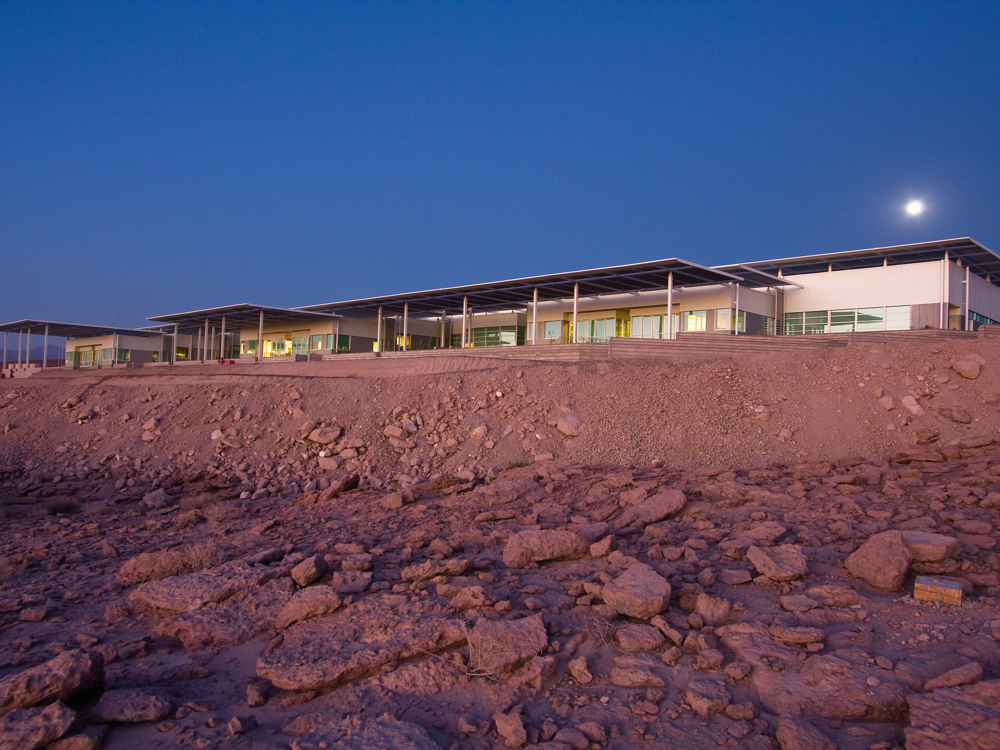 Ein Blick auf die ALMA (Atacama Large Millimeter/submillimeter Array) Operations Support Facility (OSF) in Chile. ALMA ist das derzeit größte erdbasierte astronomische Projekt, das aus einem riesigen Array aus 12-Meter-Antennen für den Submillimeterbereich besteht, die bis zu einer maximalen Entfernung von 16 Kilometern angeordnet werden können. Ein kompakteres Array aus 7-Meter- und 12-Meter-Antennen ergänzt das Hauptarray. Der Bau von ALMA hat 2003 begonnen, die Einweihung fand 2013 statt. Das ALMA-Projekt ist eine internationale Zusammenarbeit zwischen Europa, Ostasien und Nord Amerika in Kooperation mit der Republik Chile.