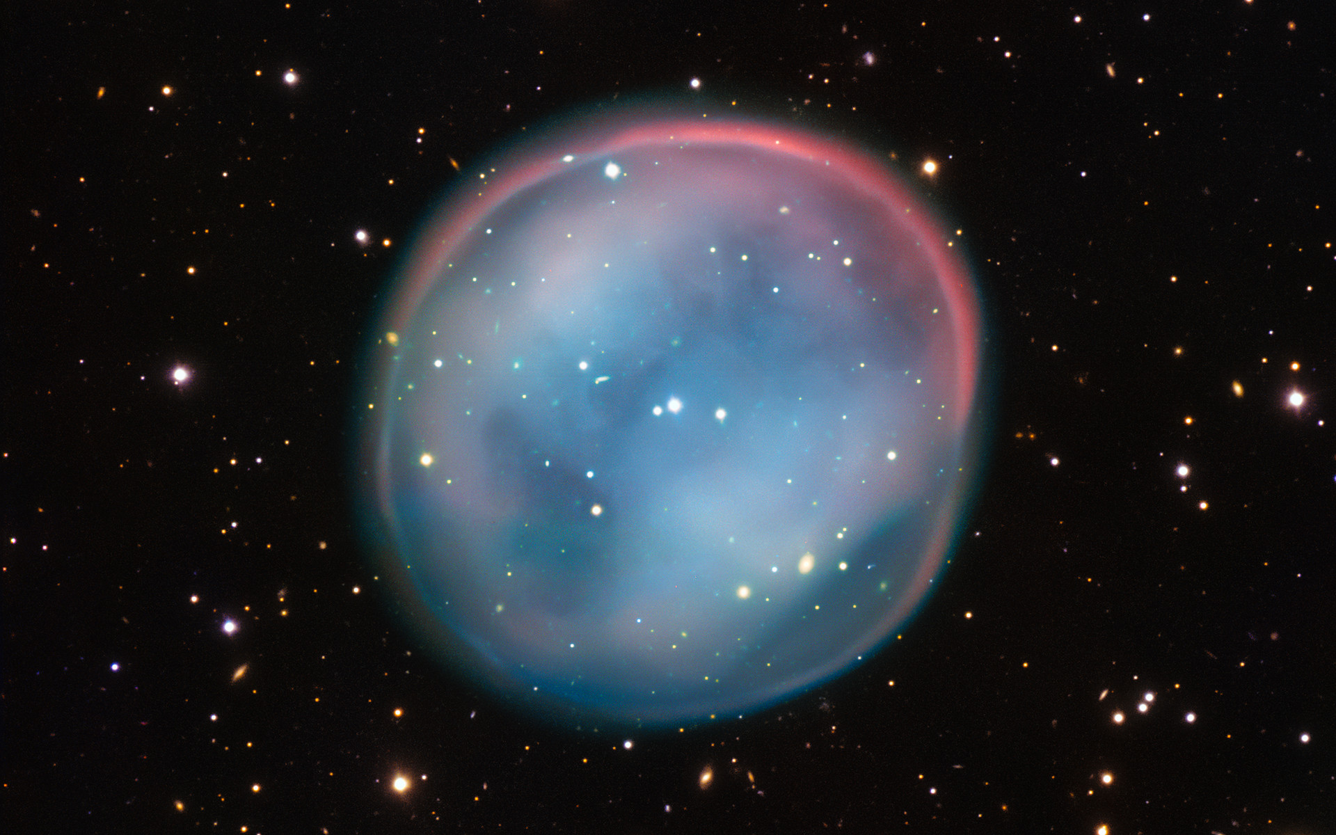 Cette magnifique bulle, aussi étincelante que le fantôme d'une étoile qui hanterait l'obscurité de l'Univers, peut sembler surnaturelle et mystérieuse. En réalité, elle constitue un objet bien connu des astronomes : une nébuleuse planétaire, ou les restes d'une étoile en fin de vie. L'image de ce petit objet noté ESO 378-1 – la meilleure obtenue à ce jour, a été capturée par le Très Grand Télescope de l'ESO au nord du Chili.