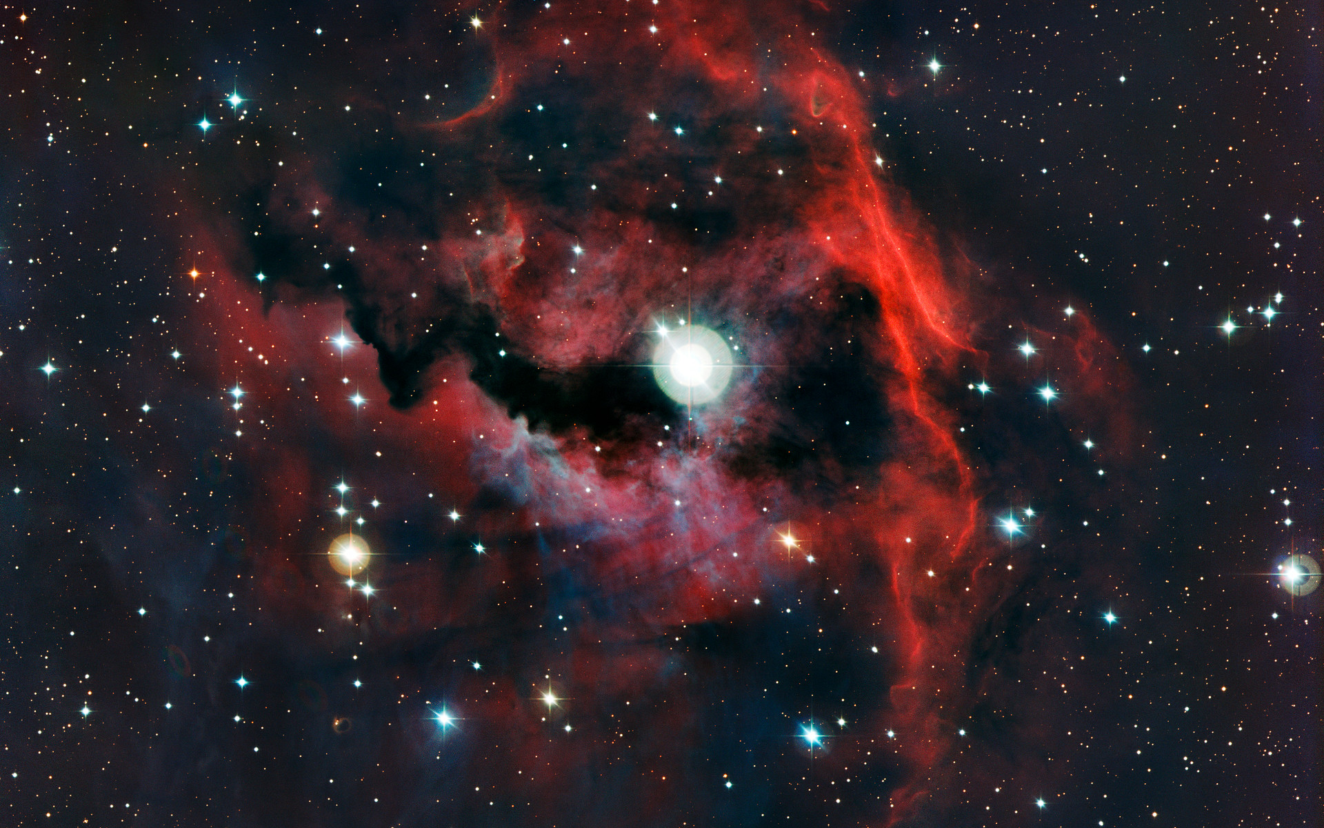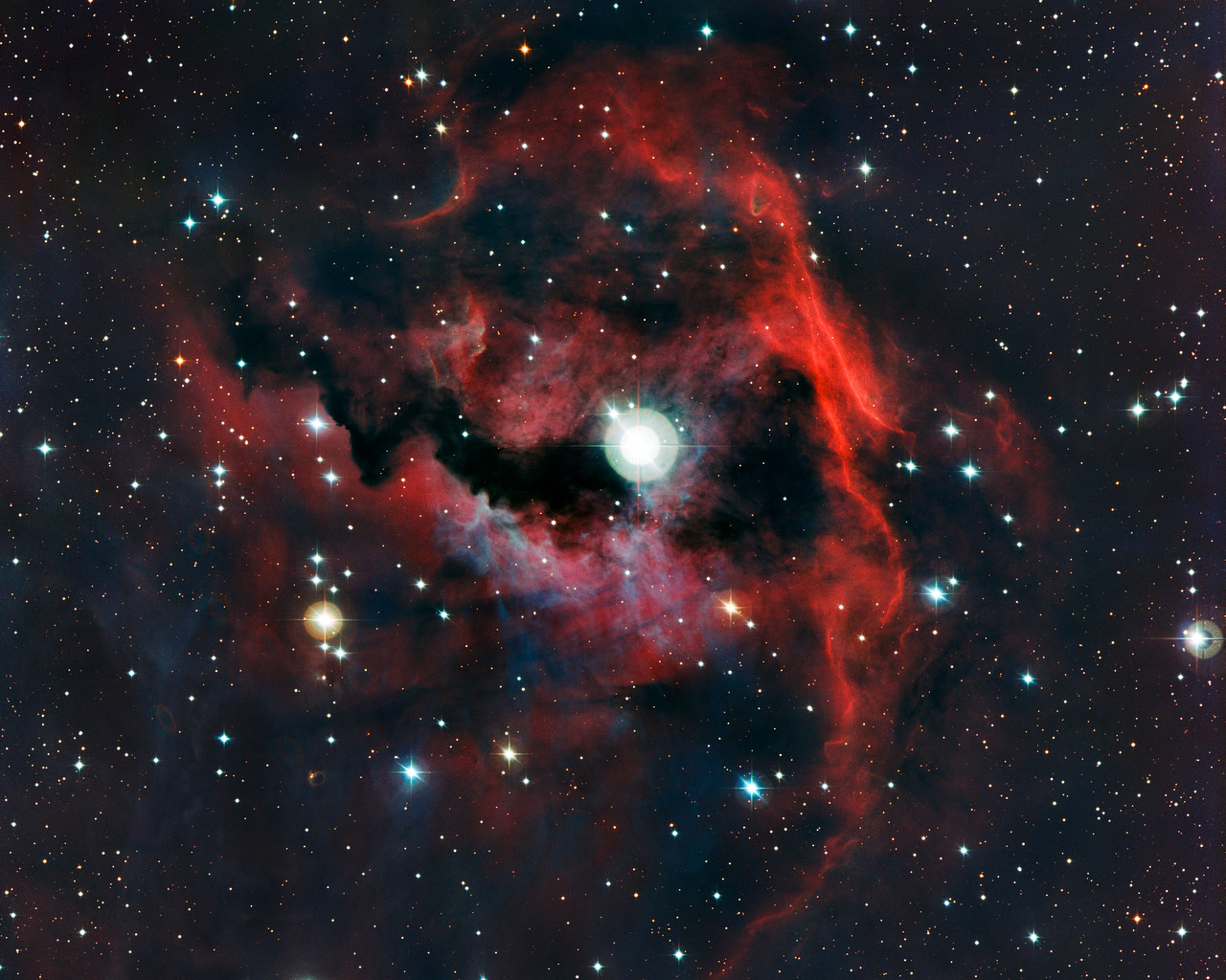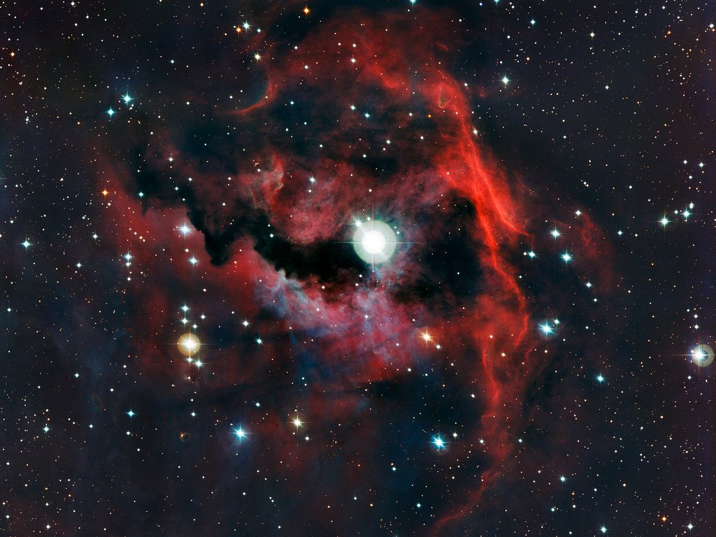 Deze nieuwe opname van de ESO-sterrenwacht op La Silla toont een gedeelte van een stellaire kraamkamer die de bijnaam Zeemeeuwnevel draagt. Deze gaswolk, ook bekend als Sh 2-292, RCW 2 en Gum 1, lijkt qua vorm een beetje op de kop van een meeuw. Zijn dieprode gloed wordt veroorzaakt door de energierijke straling van de zeer hete, jonge ster in zijn centrum. De detailrijke opname is gemaakt met de Wide Field Imager van de 2,2-meter MPG/ESO-telescoop.