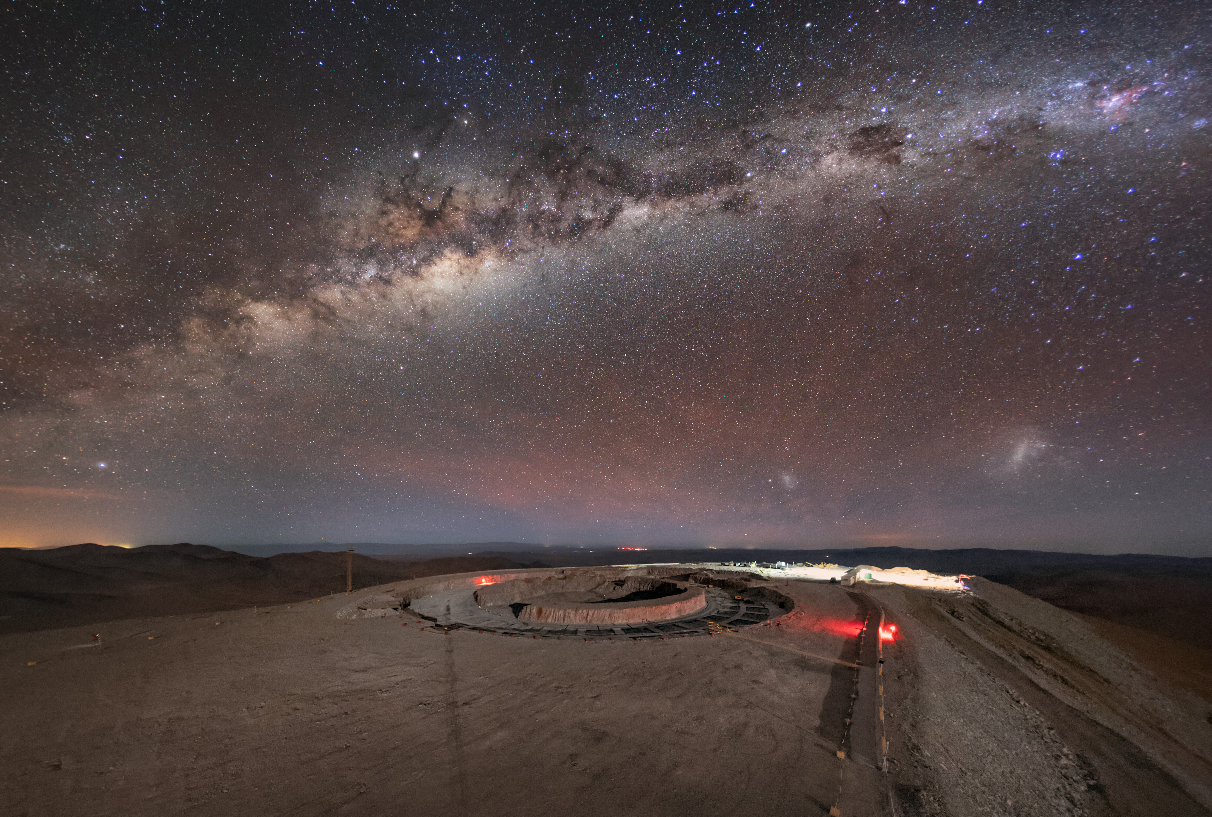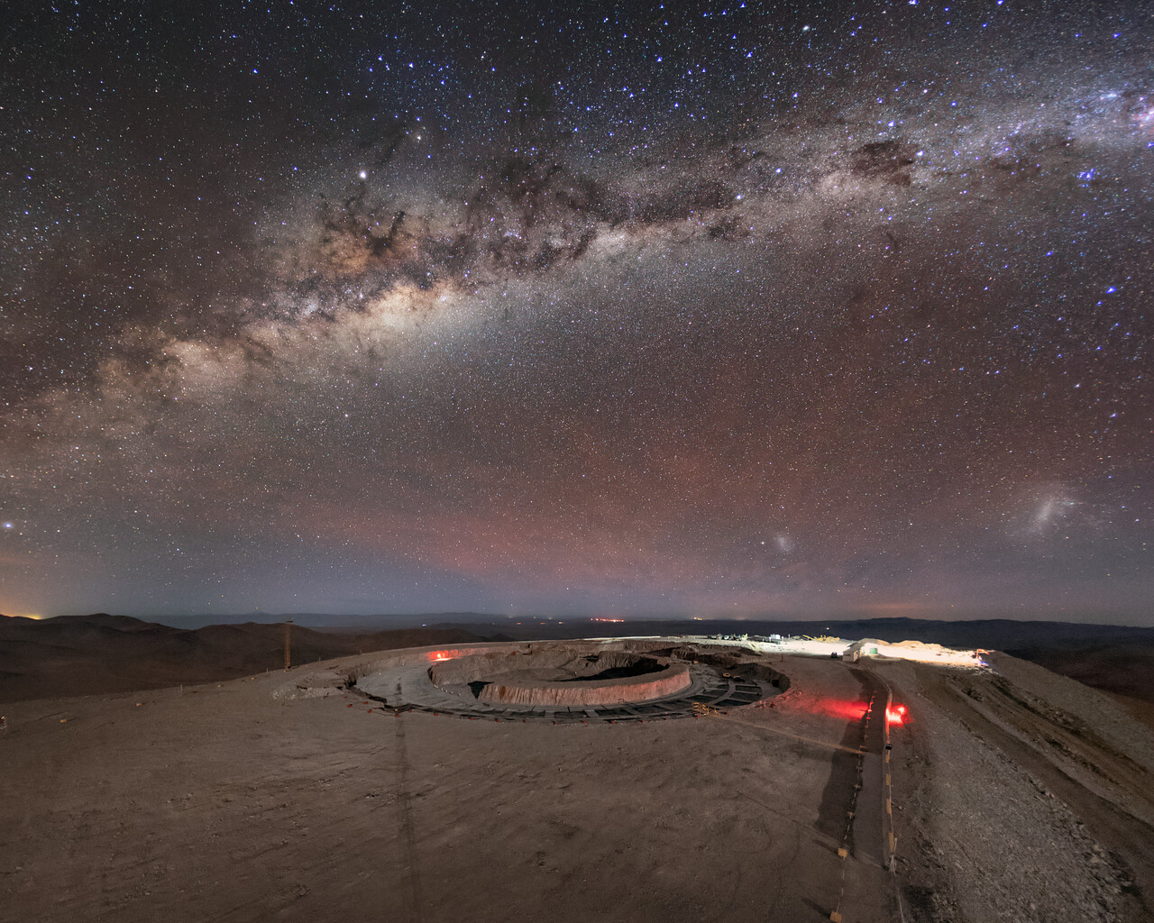 The band of the Milky Way lights up the night sky above the construction site of the Extremely Large Telescope (ELT) in the Chilean Atacama Desert. Captured from atop a webcam pole over Cerro Armazones in July 2019, the vibrant sky with its field of pin-prick stars contrasts against the ELT site, which is lit only by a few light sources. When the ELT is completed, its 39-metre main mirror will be ‘the world’s biggest eye on the sky’, able to tackle the new scientific challenges of our time.