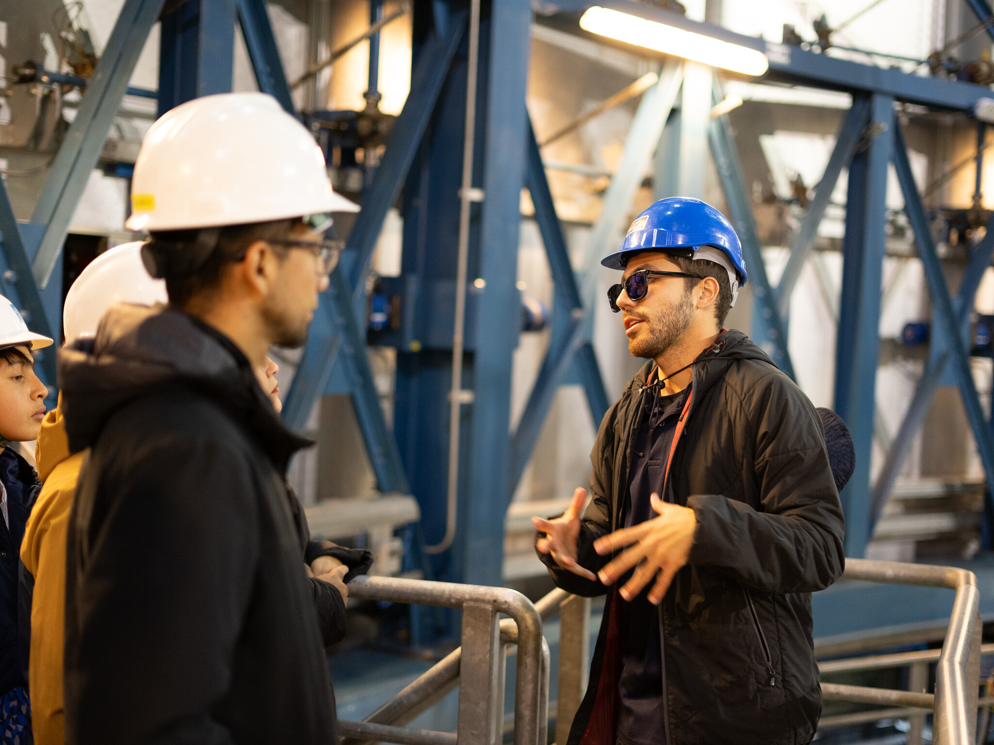 Guía explica a visitantes aspectos sobre el Very Large Telescope dentro de una de la Unidades de Telescopio (UT).