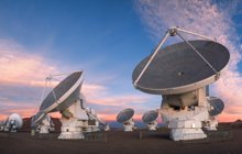 ALMA telescope dishesThe Atacama Large Millimeter/submillimeter Array (ALMA) observes the Universe over a range of radio wavelengths within the millimetre and submillimetre region of the electromagnetic spectrum. To capture such a broad range of light from distant cosmic sources, each of ALMA’s 66 antennas are equipped with an arsenal of detectors, which are highly sensitive radio receivers. Each receiver type is sensitive to a particular "band", or range of wavelengths of the electromagnetic spectrum, and data can only be taken in one band at a time.