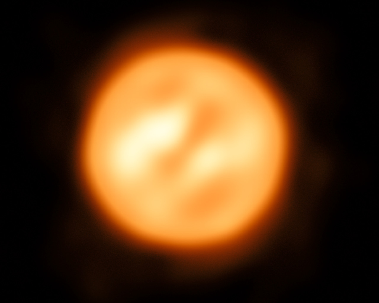 Snímek, získaný na základě rekonstrukce interferometrických pozorování, zachycuje rudého veleobra Antares, který na obloze leží v souhvězdí Štíra. Astronomům se s použitím interferometru ESO/VLTI podařilo získat dosud nejdetailnější snímek cizí hvězdy – rudého veleobra Antares. Pozorování jim rovněž umožnilo vytvořit první mapu zachycující rychlost pohybu hmoty v atmosféře jiné hvězdy, než je naše Slunce.