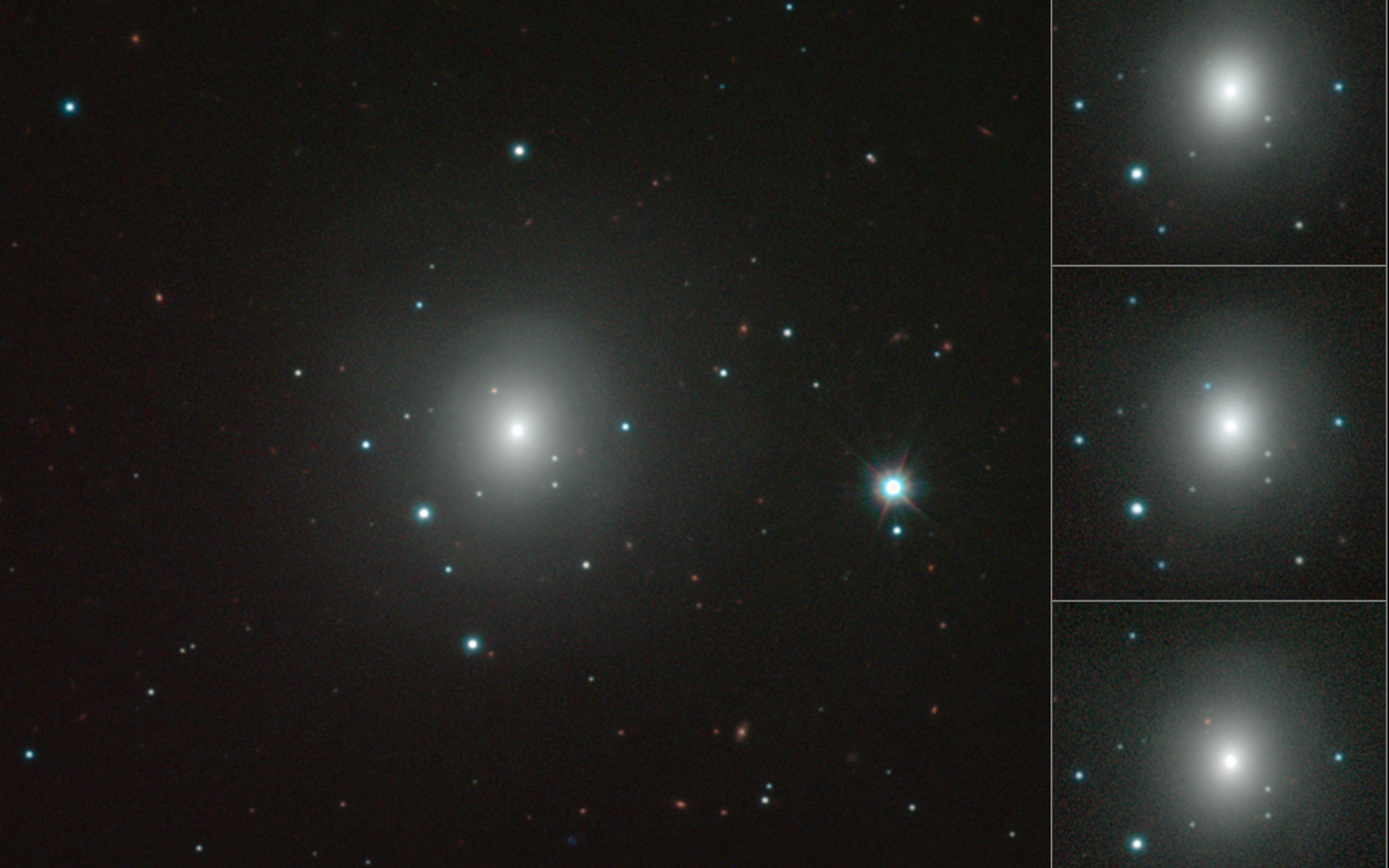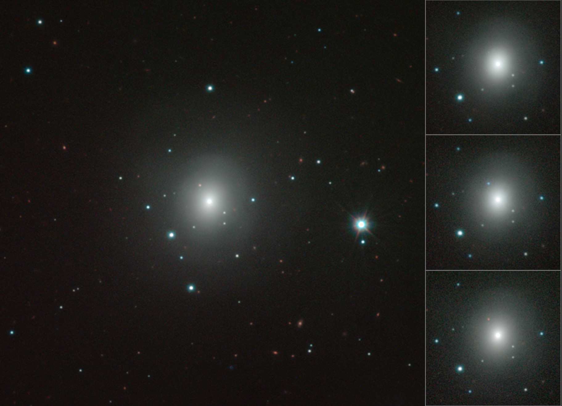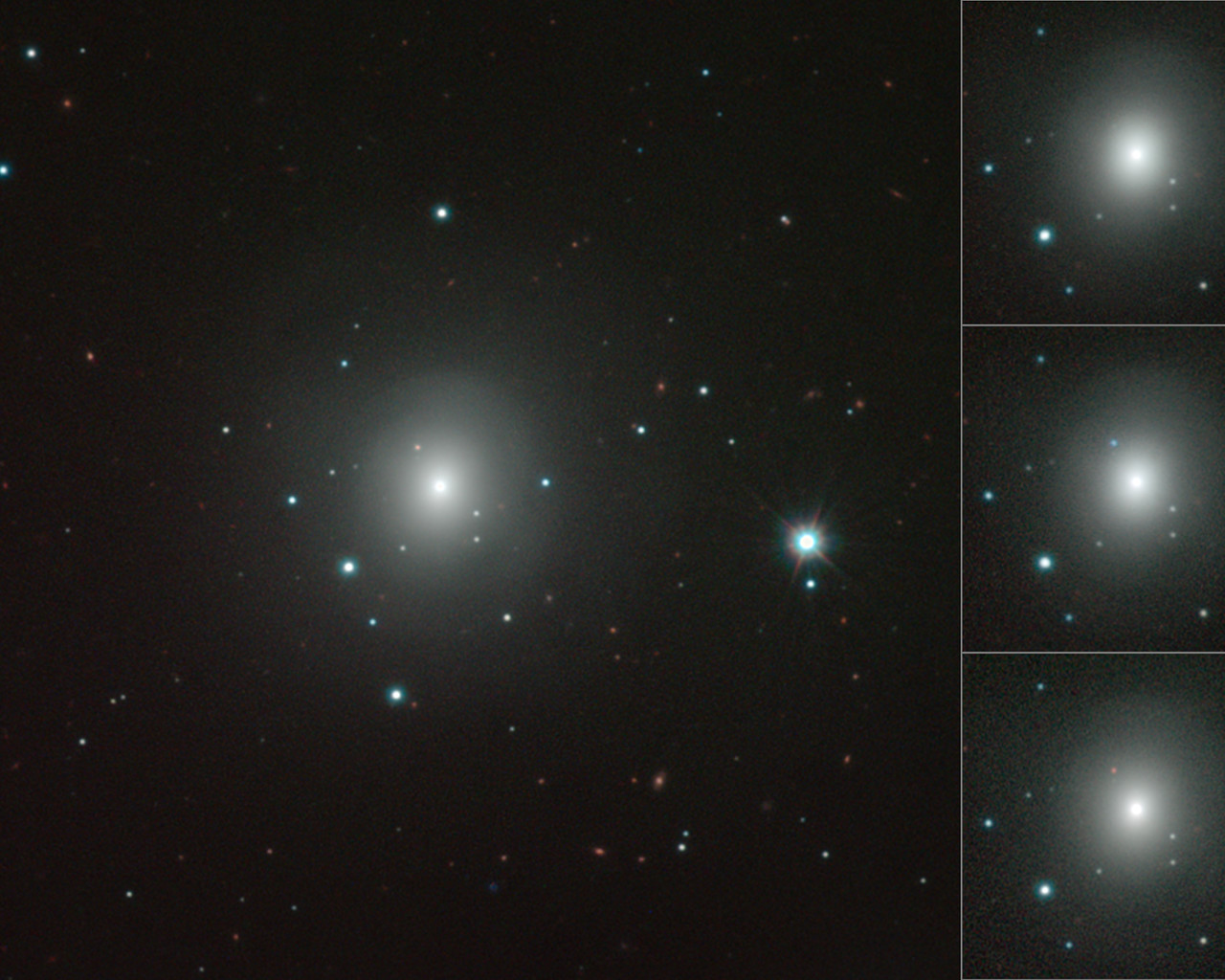 Mozajka snímků galaxie NGC 4993 a měnící se kilonovy pořízených dalekohledem ESO/VISTA