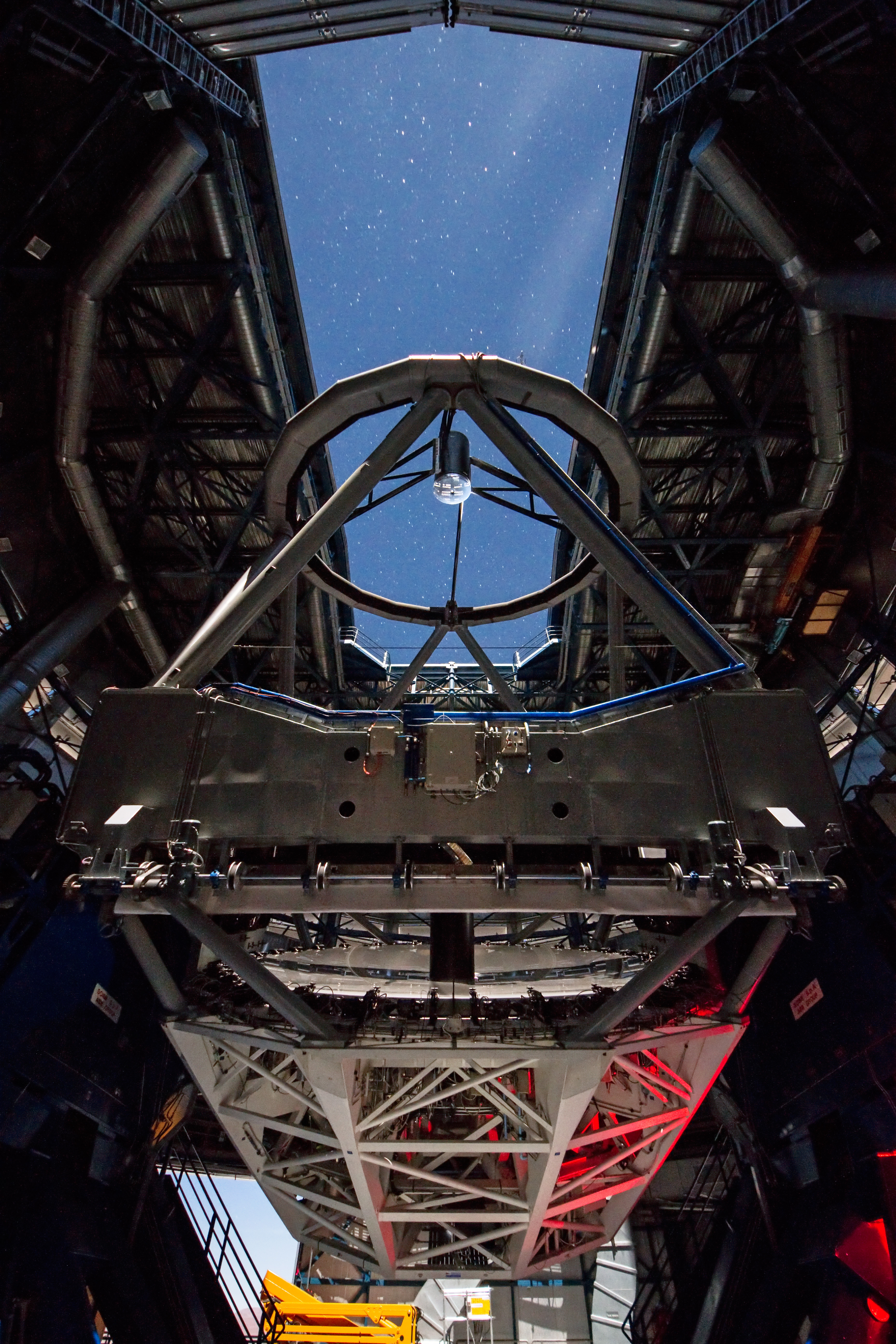 Co vidíme v záři Měsíce, je hlavní ocelová konstrukce podpírající optické vybavení jednotky VLT. Hlavní zrcadlo, jehož průměr je 8.2 metru a které váží více než 23 tun, vyžaduje pevný a solidní rám, díky kterému se zrcadlo může natáčet, ale stále zachovává vysoké optické rozlišení. Tato pohyblivá ocelová konstrukce sama váží přes 430 tun, tolik, jako plně naložený Jumbo Jet.