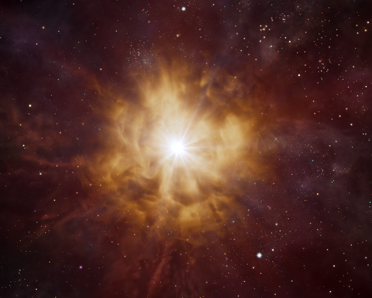 Wolf-Rayetstjerner er varme og tunge, og eksisterer i nogle få millioner år. Det menes, at de slutter deres tilværelse med dramatiske supernovaeksplosioner, hvor grundstoffer, som er dannet i deres indre slynges ud rummet.