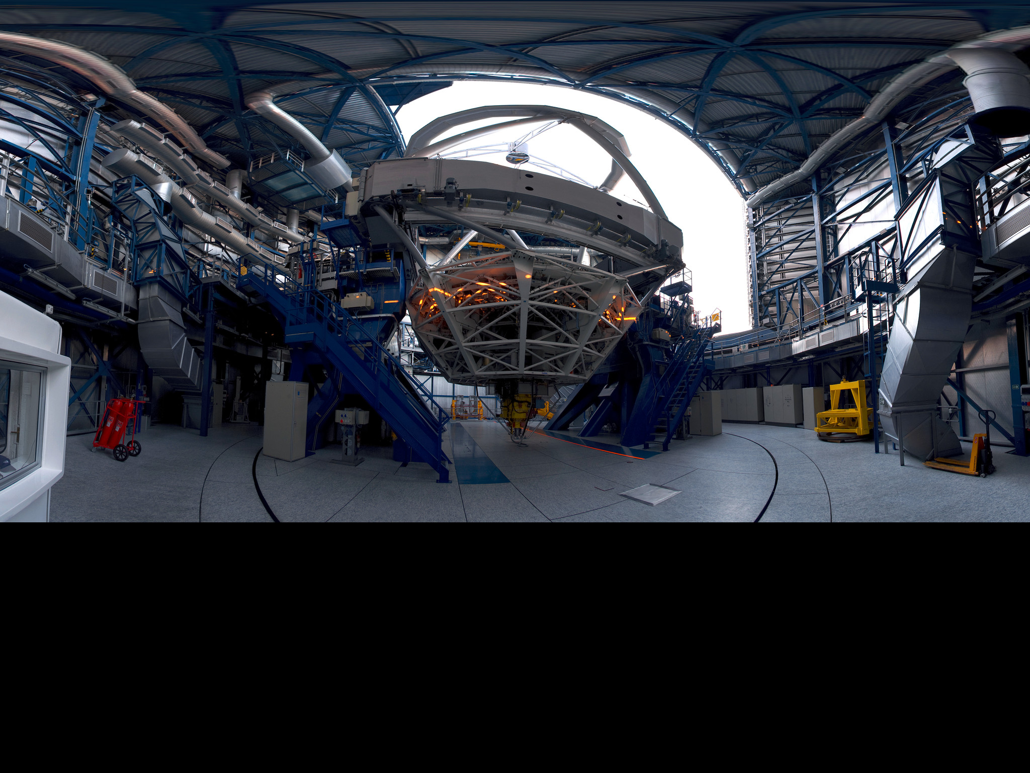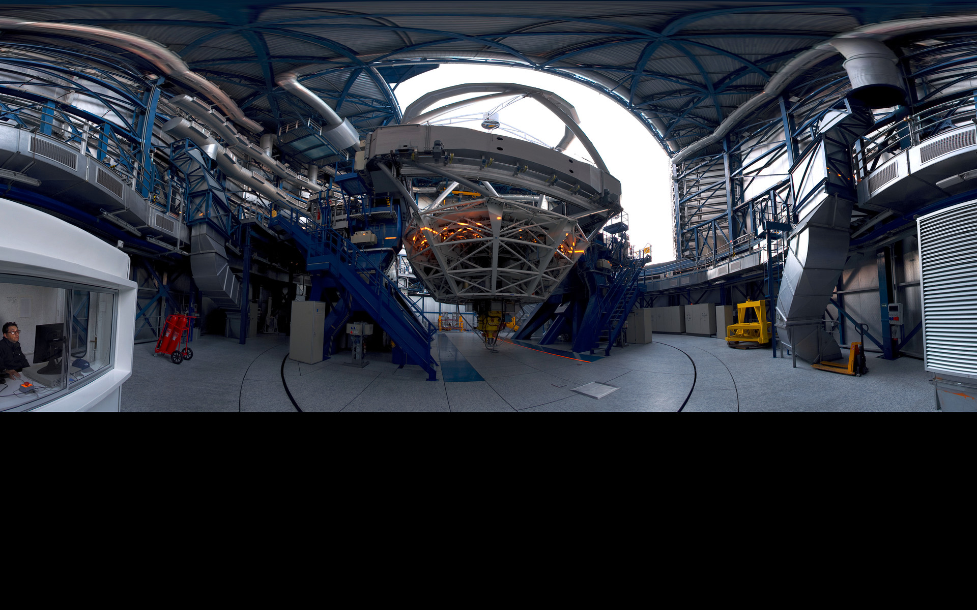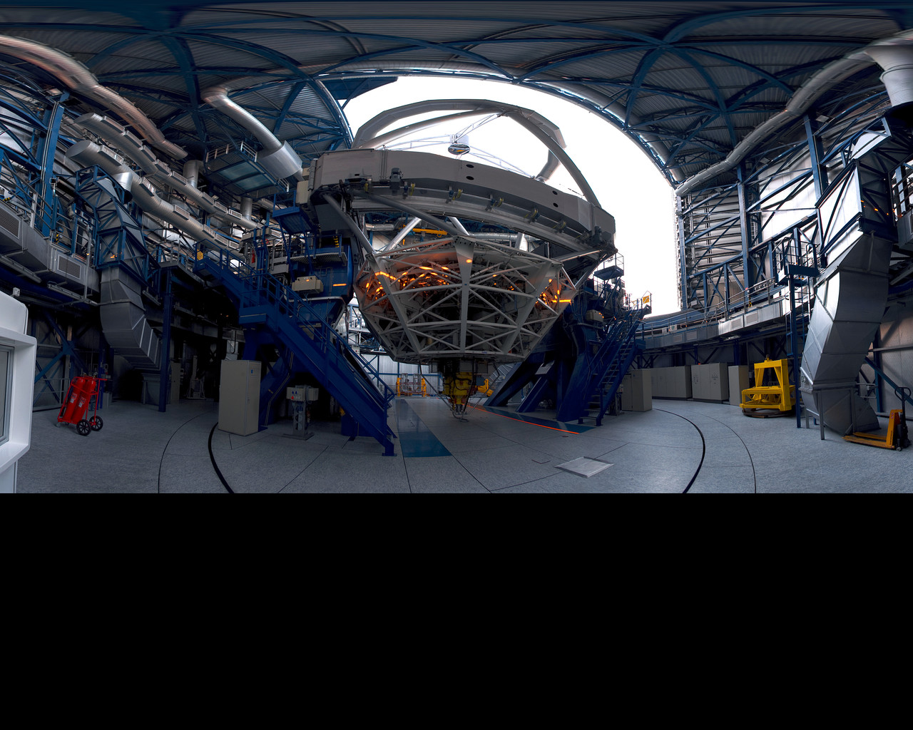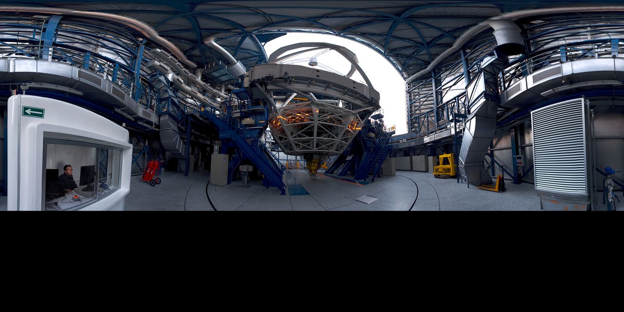This rather eccentric image shows one of the Unit Telescopes of ESO's Very Large Telescope (VLT), inside its protective dome. The VLT consists of four such telescopes, each having a main mirror some 8.2 metres across, accompanied by four smaller, auxiliary, telescopes. Together they amount to one of the most powerful astronomical facilities in the world. Each of the four Unit Telescopes has been given a name from the indigenous Mapuche (Mapudungun) language: this one is called Antu, which means The Sun.