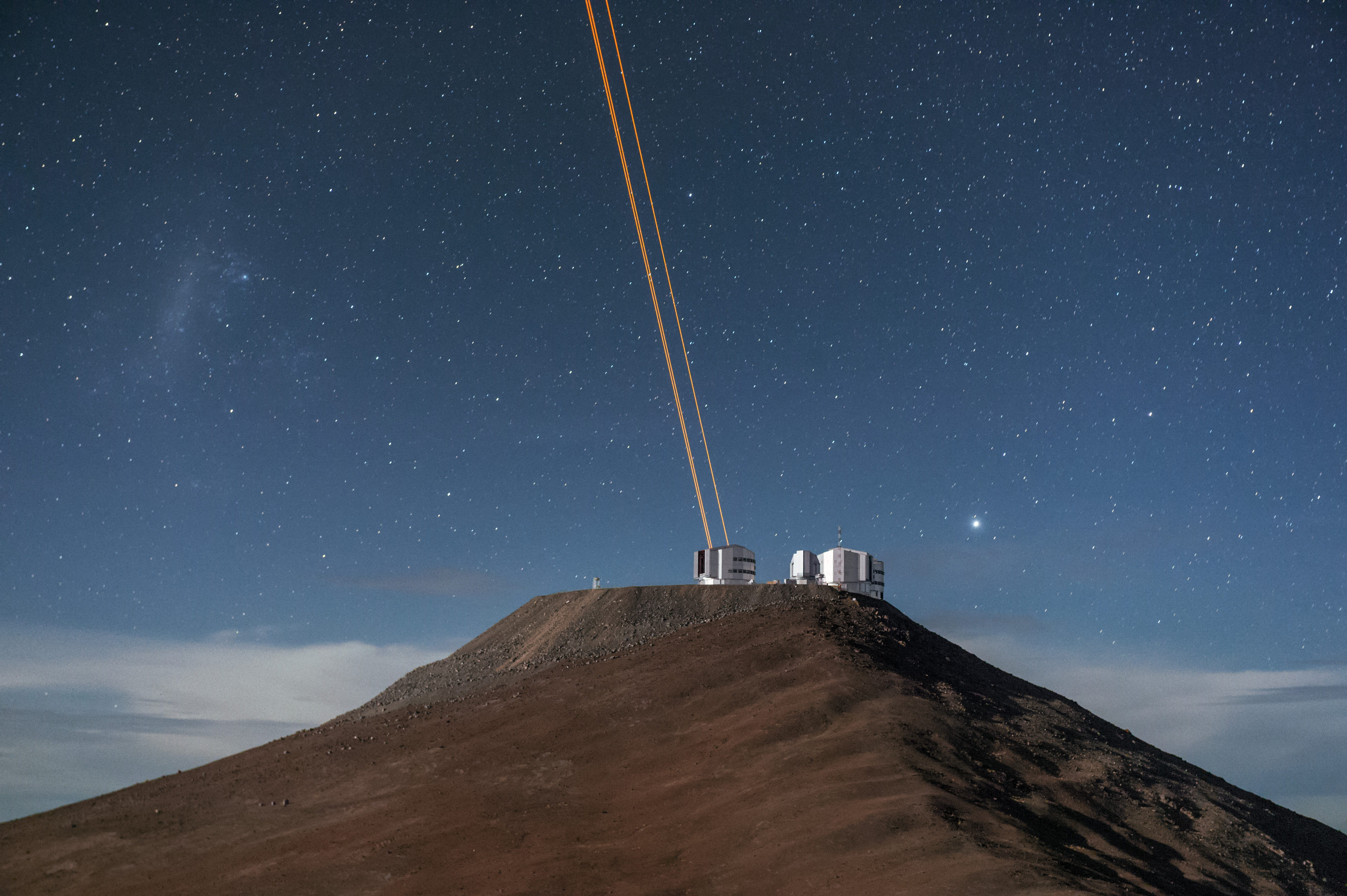 The lasers, which are the most powerful laser guide stars ever used for astronomy, are an integral part of the adaptive optics system on the VLT. Adaptive optics allows astronomers to drastically reduce the atmospheric distortion present at even the best sites in the world for astronomy, including Paranal in Chile, the home of the VLT.