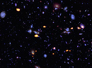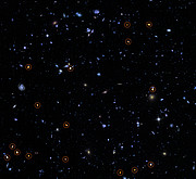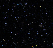 [3] Cette région du ciel est approximativement sept cents fois plus petite que la surface du disque de la pleine Lune vu depuis la Terre. Le nombre élevé de galaxies contenues dans une si petite fraction de ciel constitue l’un des aspects les plus étonnants de l’HUDF.