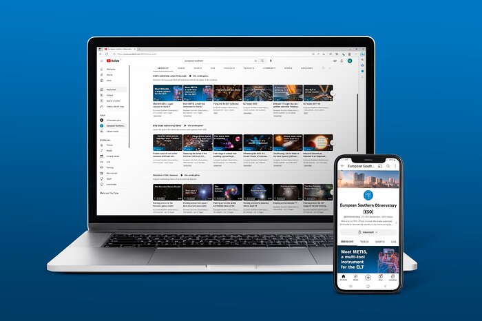 Dieses Bild bietet einen Einblick in den neu gestalteten ESO-YouTube-Kanal, der jetzt kuratierte Wiedergabelisten zu verschiedenen ESO-, Astronomie- und Technik-Themen enthält. Eine der Wiedergabelisten ist dem Extremely Large Telescope (ELT) der ESO gewidmet, einer Anlage, die derzeit in der Atacama-Wüste, nur wenige Kilometer vom VLT entfernt, gebaut wird. Eine weitere Wiedergabeliste, Wonders of the Universe, zeigt atemberaubende Ansichten astronomischer Objekte. Die neuesten Entdeckungen und Aktualisierungen der ESO, die bisher im ESOcast zu finden waren, sind nun in der Wiedergabeliste Bite-Sized Astronomy News zu finden. Die Wiedergabeliste Broadcaster enthält Material, das Medien- und Inhaltsproduzenten weiterverwenden können.