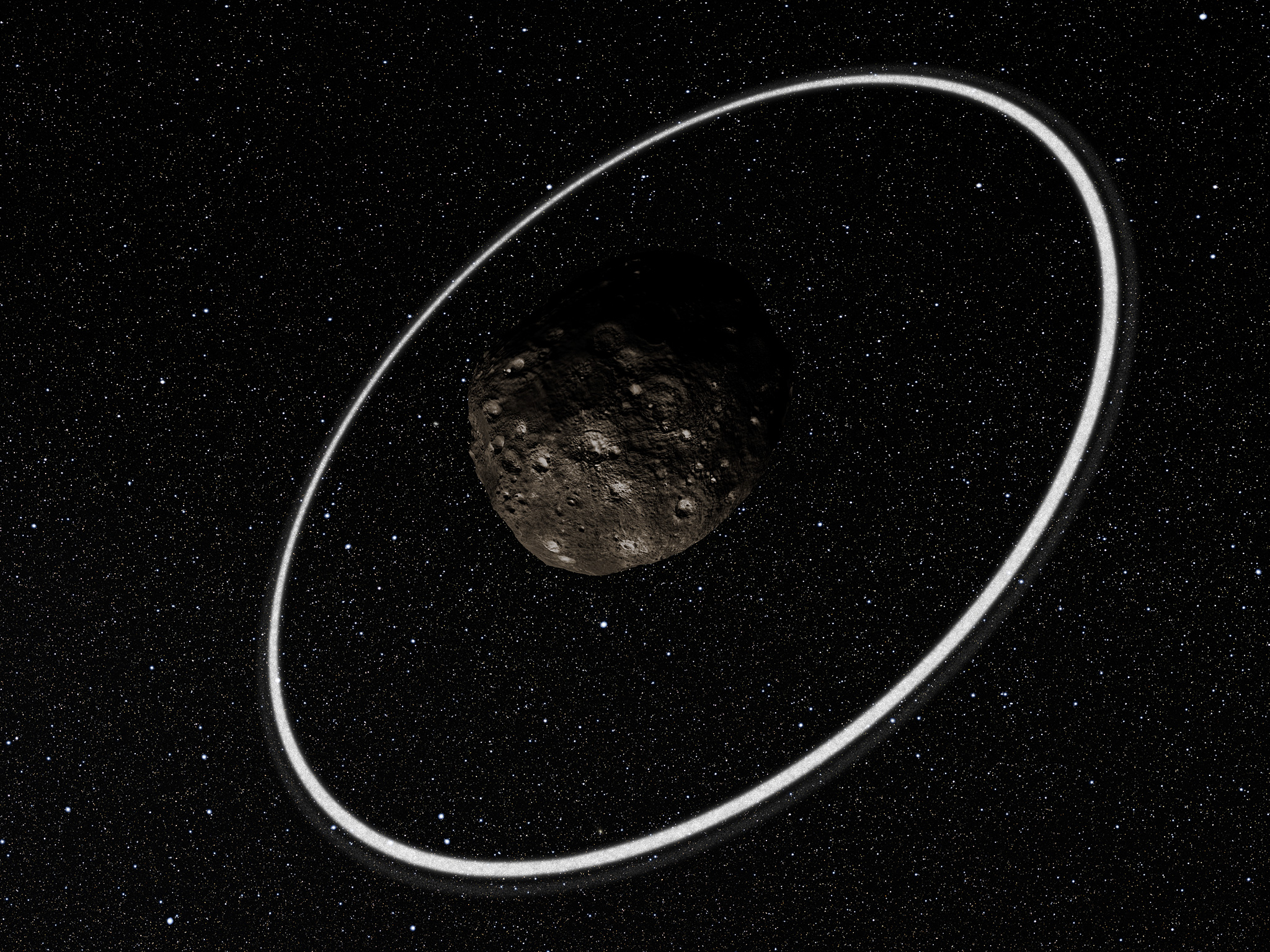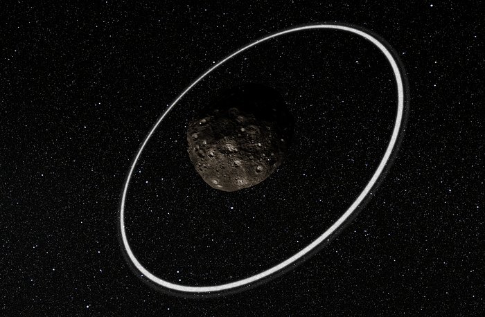 Beobachtungen von vielen Standorten in Südamerika, unter anderem am La-Silla-Observatorium der ESO, haben zu der überraschenden Entdeckung zweier dichter, schmaler Ringe um den fernen Asteroiden Chariklo geführt. Es ist das bei weitem kleinste Objekt mit Ringen, das bisher gefunden wurde und nur das fünfte Objekt in unserem Sonnensystem – nach den viel größeren Planeten Jupiter, Saturn, Uranus und Neptun – das diese Eigenschaft besitzt. Der Ursprung der Ringe bleibt ein Rätsel, sie könnten jedoch die Folge einer Kollision sein, durch die eine Trümmerscheibe entstanden ist.
