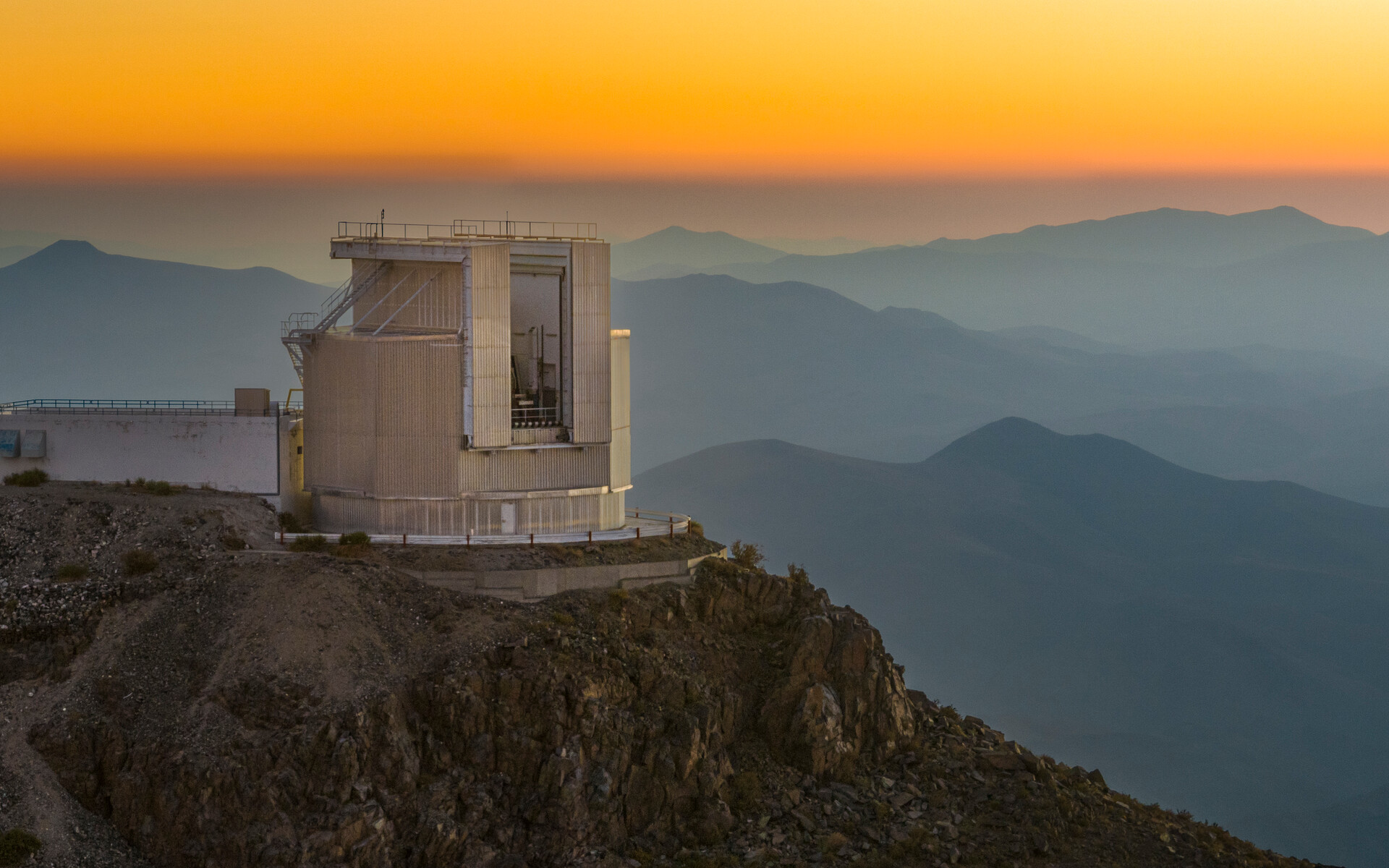 Majestätisch steht das New Technology Telescope (NTT) auf der Spitze eines Hügels am La-Silla-Observatorium der ESO und blickt auf einen weiteren pastellfarbenen Sonnenuntergang in der chilenischen Atacama-Wüste. Der Star dieses Bildes der Woche hat seit seiner Einweihung im Jahr 1989 eine Entdeckung nach der anderen gemacht. Sein Standort auf La Silla liegt auf einer Höhe von 2400 Metern und ist weit entfernt von jeglichen Lichtverschmutzungsquellen, sodass das NTT einen ungestörten Blick auf das Universum genießt.
