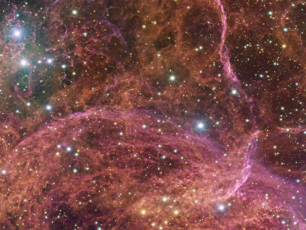 Was bleibt eigentlich übrig, wenn ein massereicher Stern das Ende seines Lebens erreicht hat, so könnte man fragen? Schauen Sie selbst: Dieses Bild der Woche zeigt einen kleinen, aber sehr detailreichen Teil des Vela-Supernovaüberrests, das schreckliche und doch wunderschöne Ergebnis eines explosiven Sterntodes.