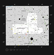 Übersichtsaufnahmen dieser Himmelsregion zeigen eine ganze Reihe von interessanten Objekten. Die jungen, hellen Sterne innerhalb des Nebels gehören zur nahegelegenen Sternentstehungsregion CMa R1 im Sternbild Canis Major, die eine große Zahl von hellen Sternen und ganzen Sternhaufen beherbergt. Unweit des Möwennebels befindet sich auch der Nebel „Thors Helm“, der mit der Unterstützung von Brigitte Bailleul – der Gewinnerin des „Twittern Sie sich zum VLT!“-Wettbewerbs (eso1238a) – zum 50. Geburtstag der ESO am 5. Oktober 2012 mit dem Very Large Telescope (VLT) beobachtet wurde.