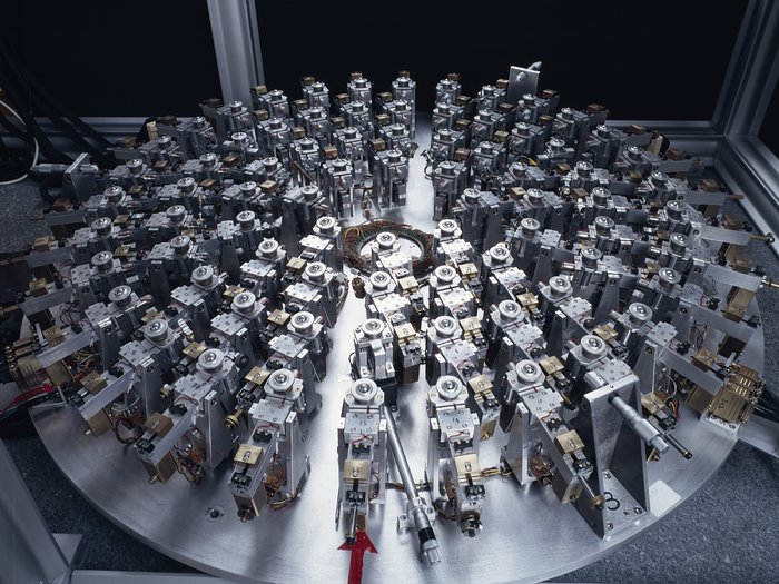 1-metre telescope supports for the active optics experiment at the ESO headquarters in Garching in 1987. This support model was later used for the NTT mirror.