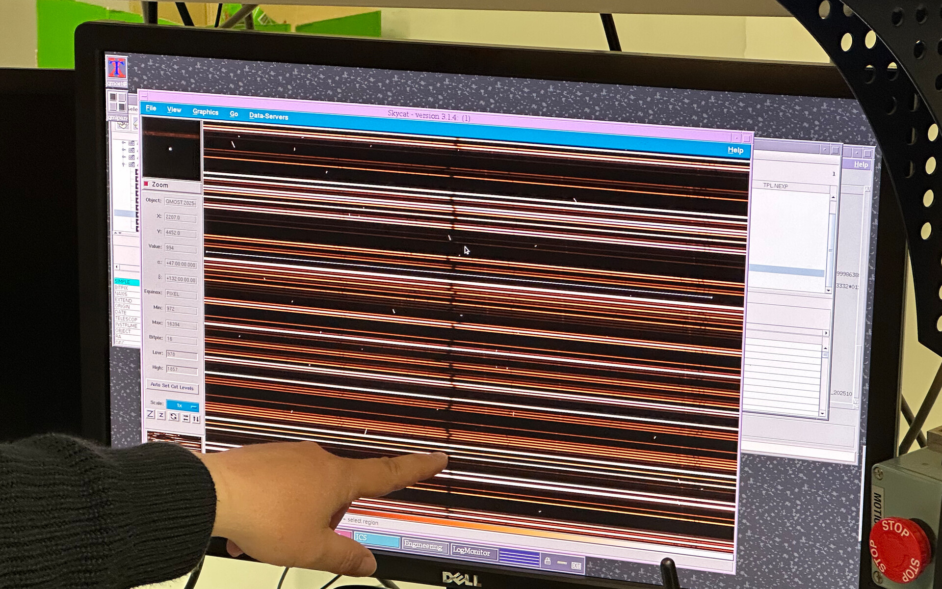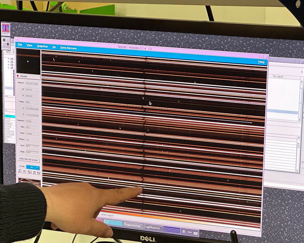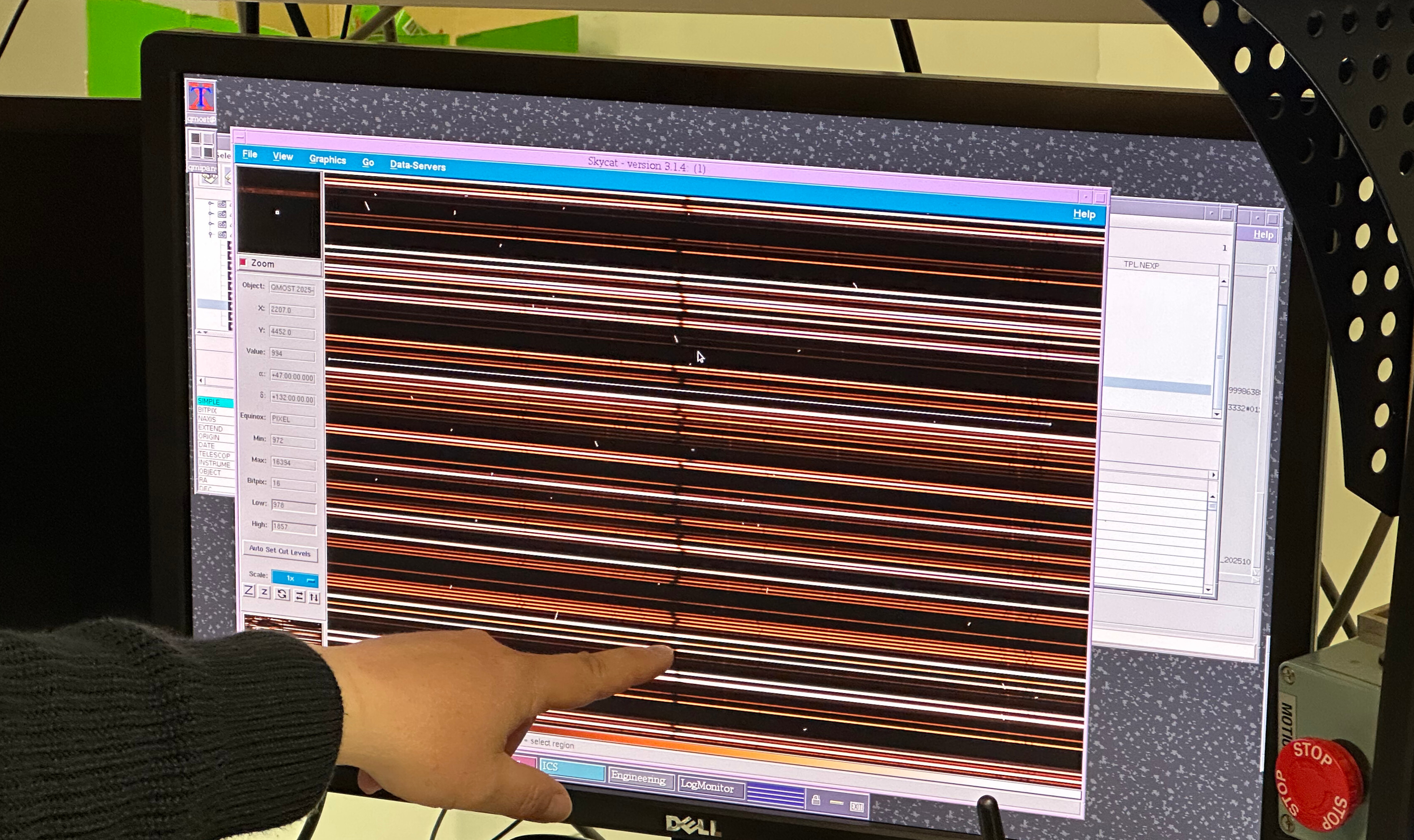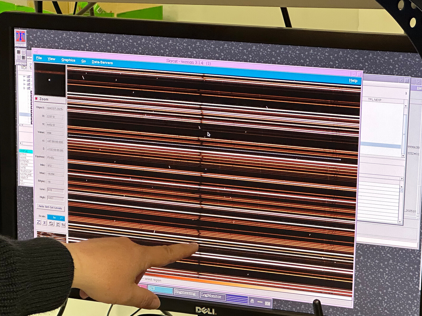 Spectra obtained during the 4MOST first light on October 18 2025. Each bright horizontal line is the spectrum of a different astronomical object.