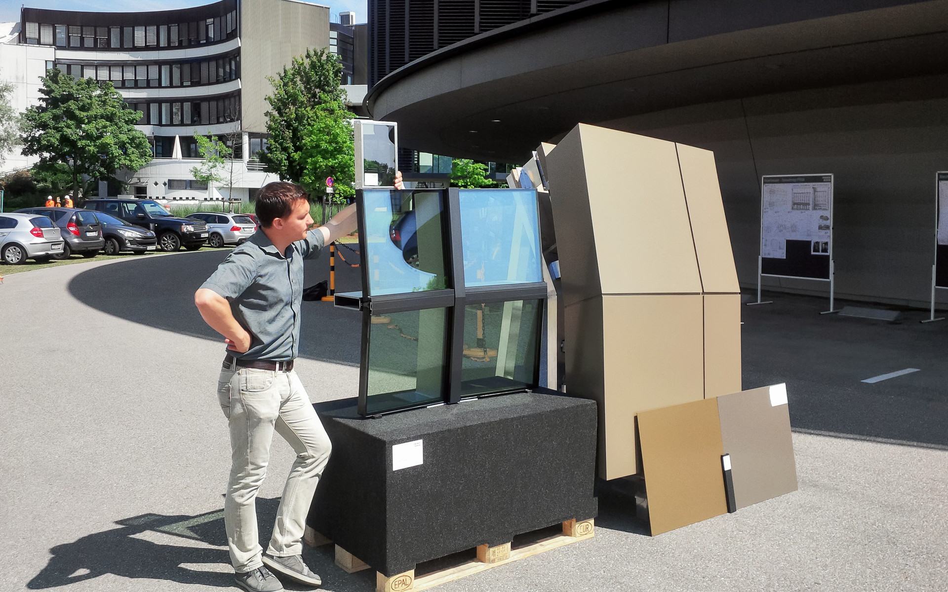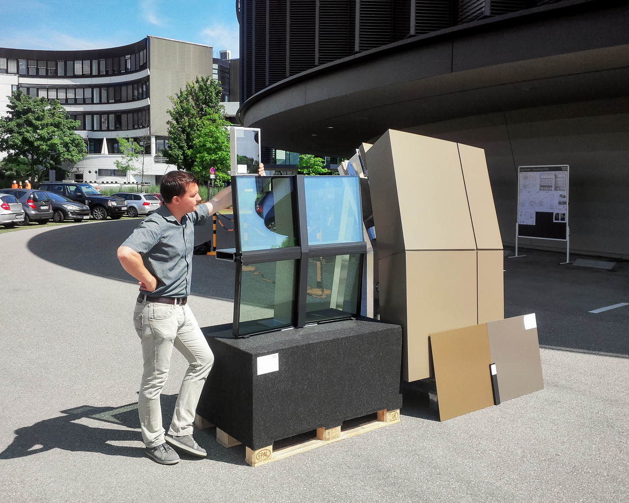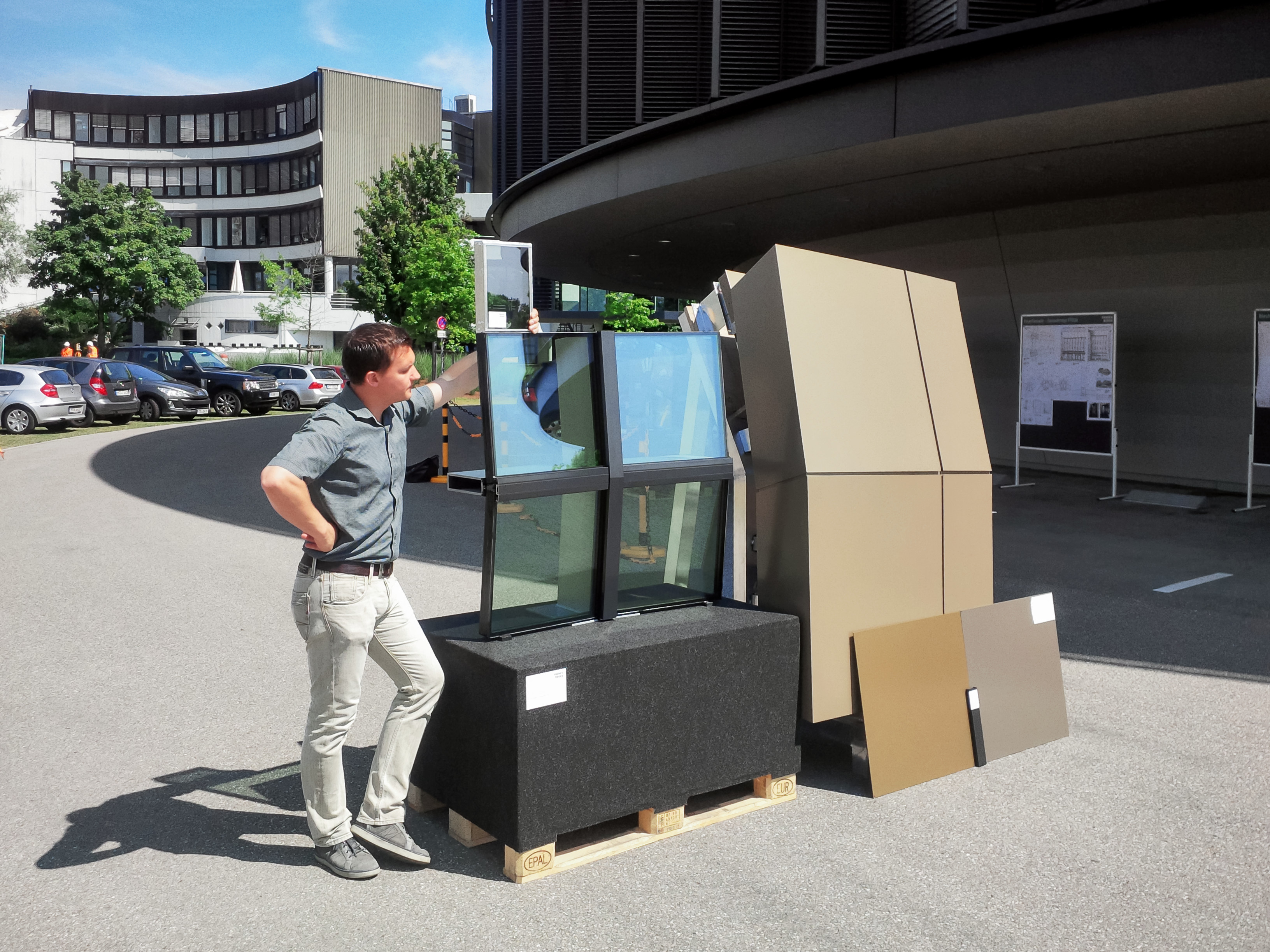 Samples of windows and external panels for the ESO Supernova Planetarium & Visitor Centre.