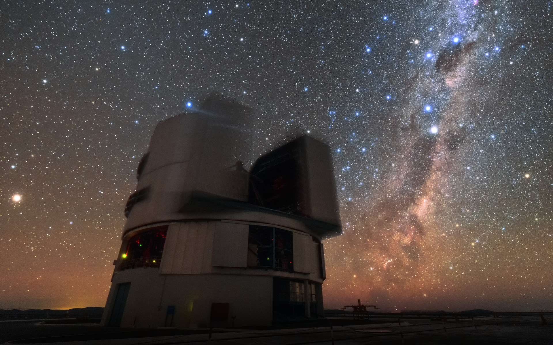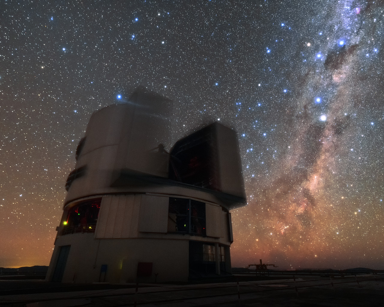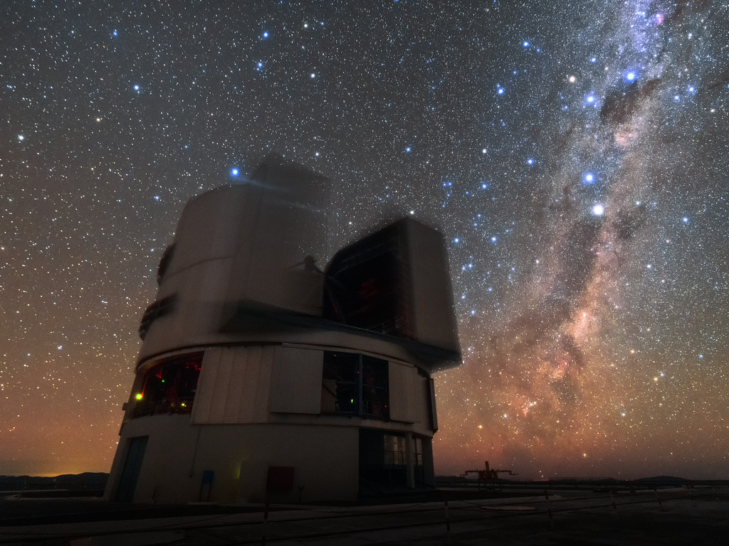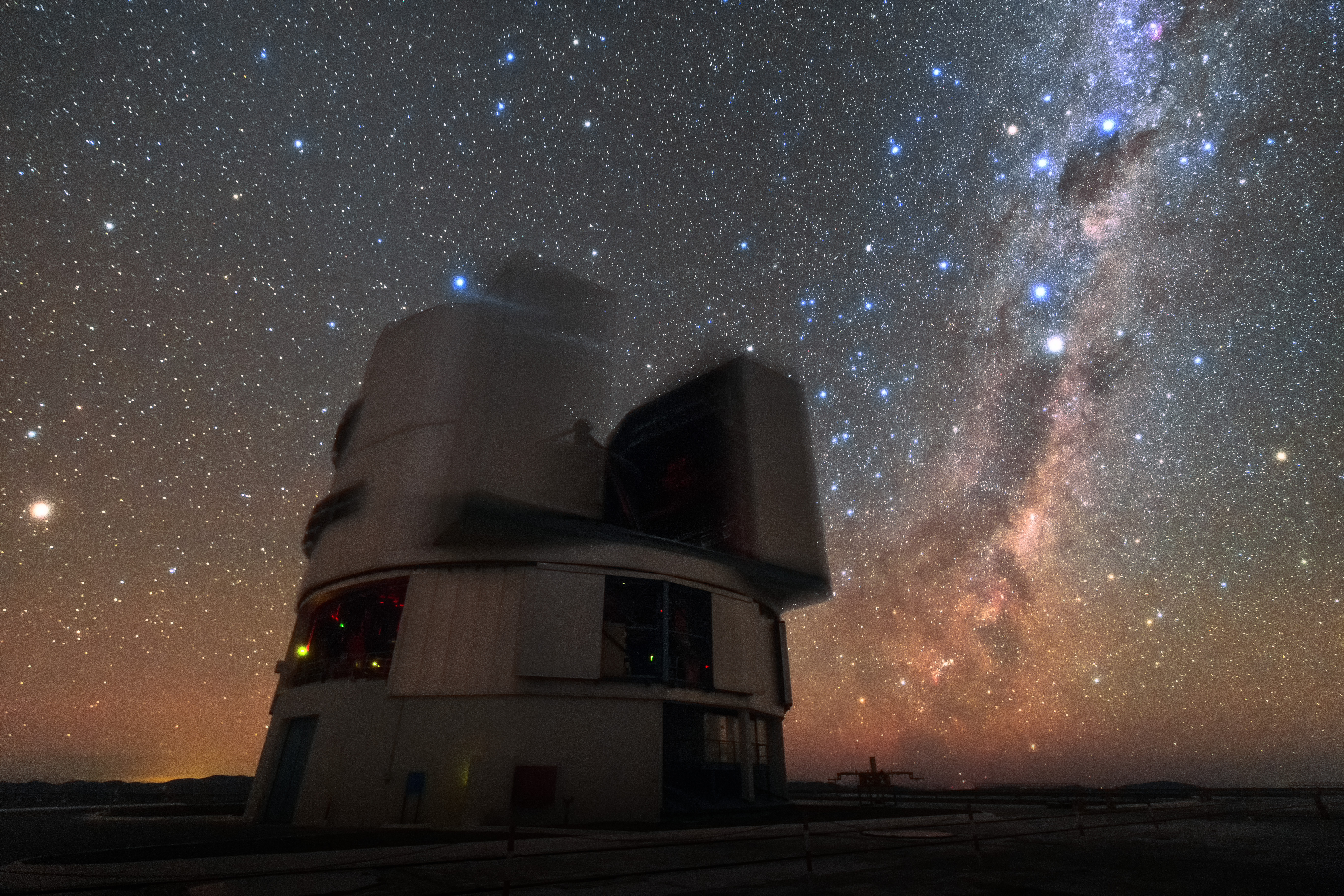 One of the four Unit Telescopes (UT) of ESO's Very Large Telescope (VLT) sits under the breathtaking Paranal sky. Each of the UTs has a main mirror 8.2 metres in diameter, making them some of the largest single-mirror telescopes in the world. When used in combination, the four UTs allow astronomers to study the night sky in up to 16 times greater detail than any of them can observe alone. With about 300 clear nights per year, the excellent viewing conditions at Paranal make it the perfect location to make the most of the VLT's capabilities.