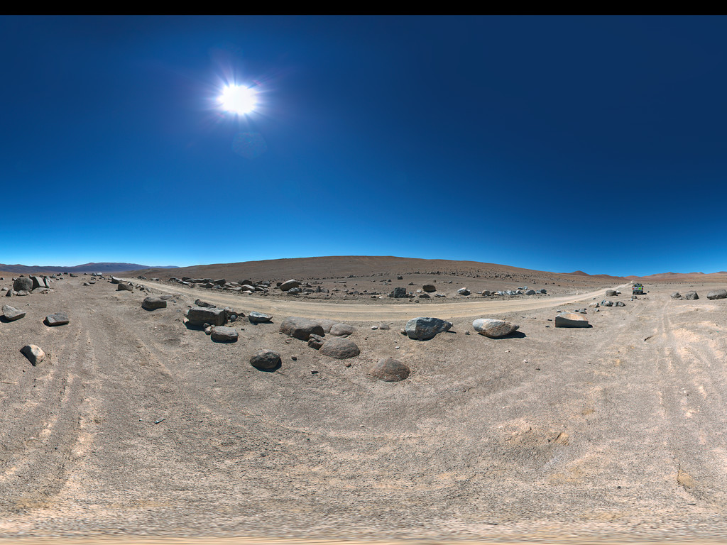 360 degree panorama view of the road to Cerro Armazones, near ESO's Paranal Observatory, site of the Very Large Telescope (VLT). Cerro Armazones was chosen as the site for the planned Extremely Large Telescope (ELT), which, with its 40-metre-class diameter mirror, will be the world’s biggest eye on the sky.