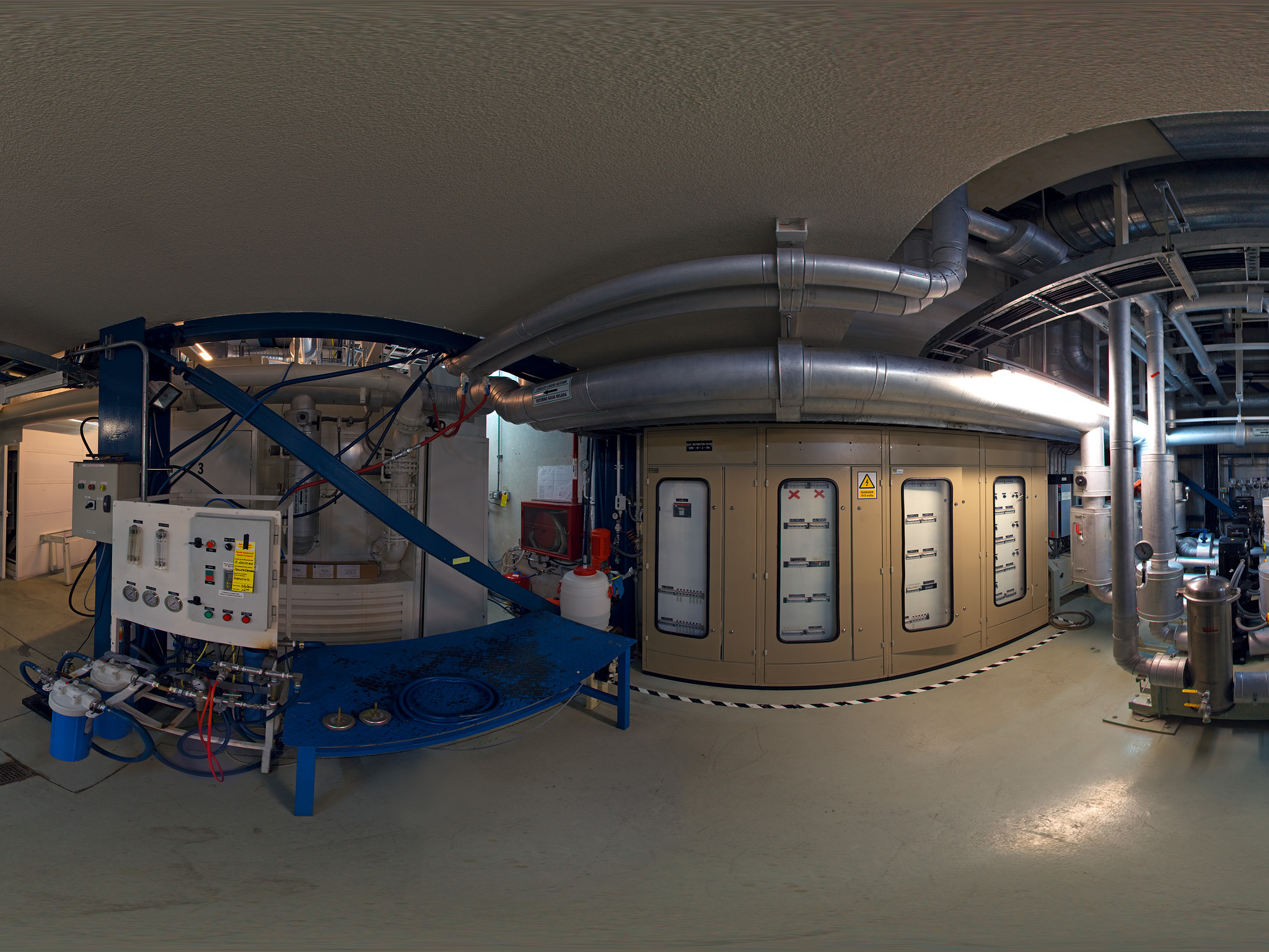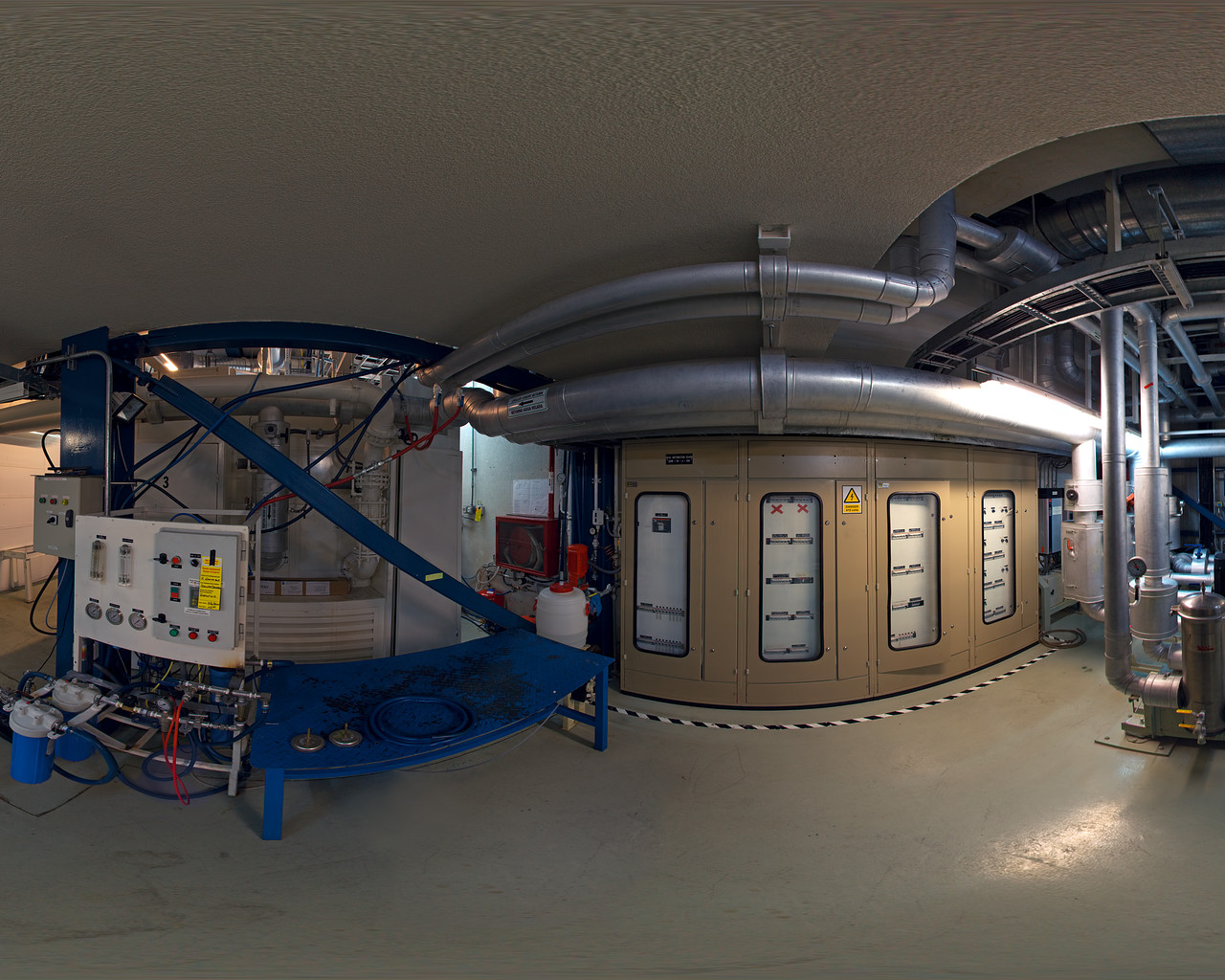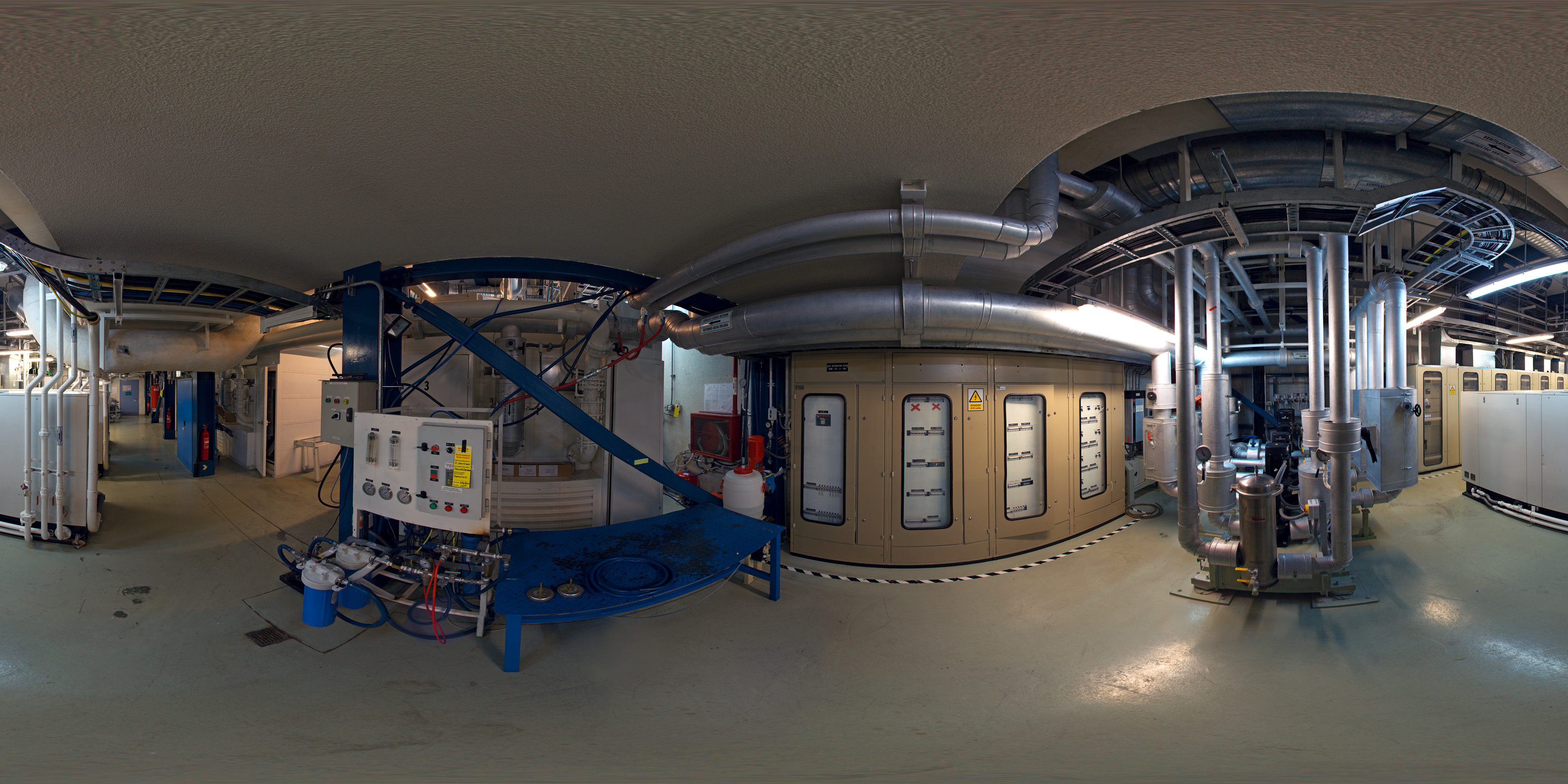 This panorama shows the liquid cooling plant inside the control building at Paranal.