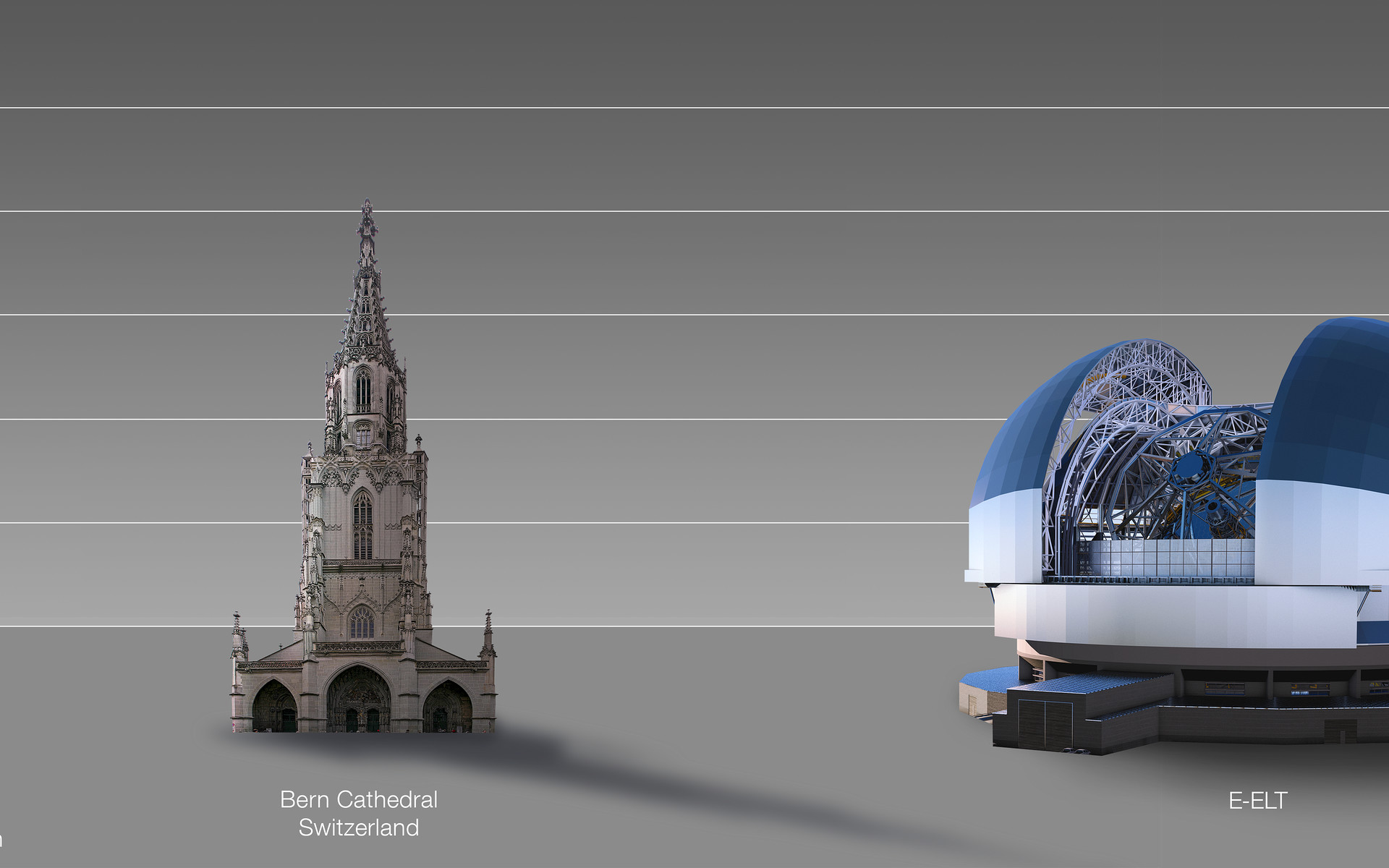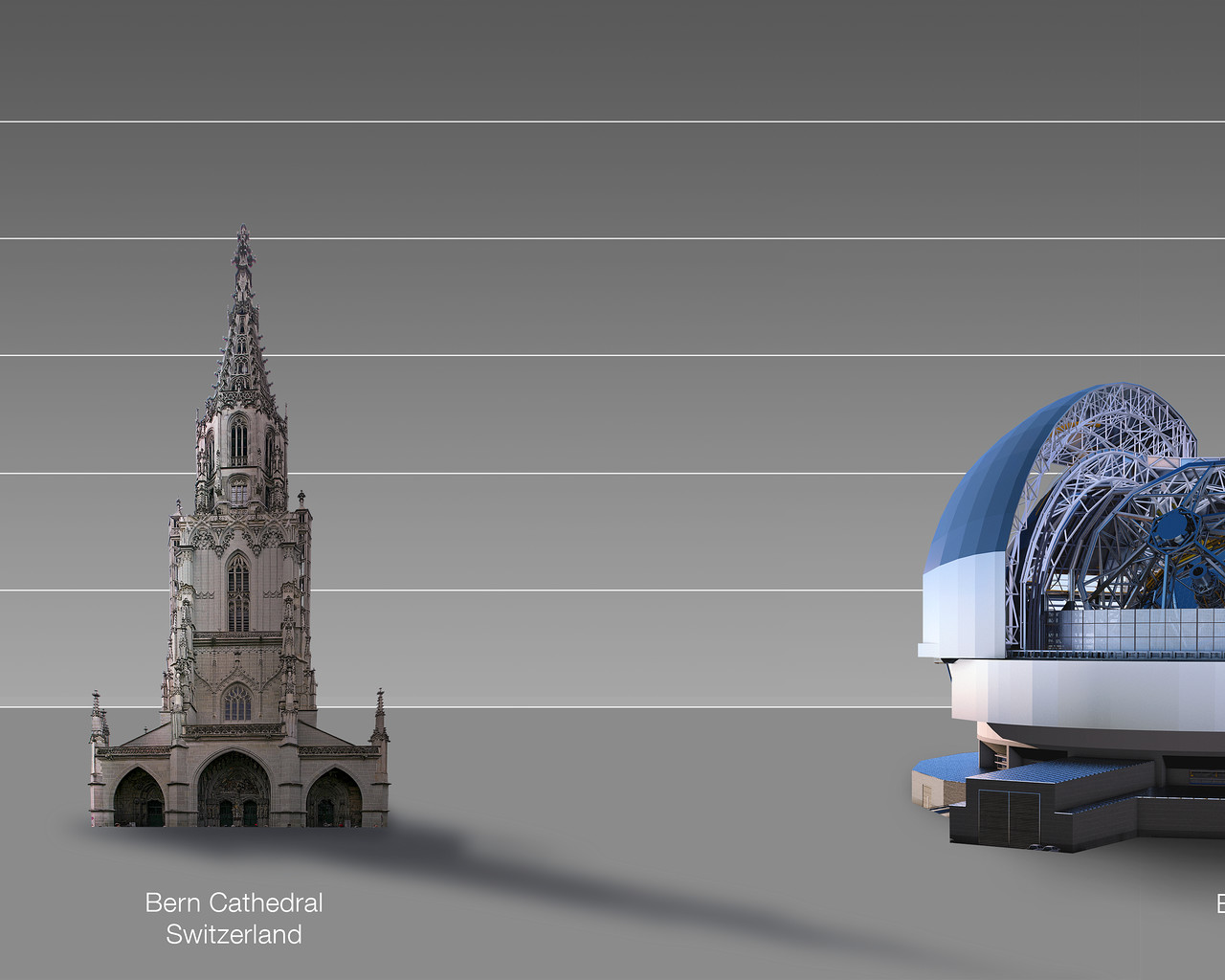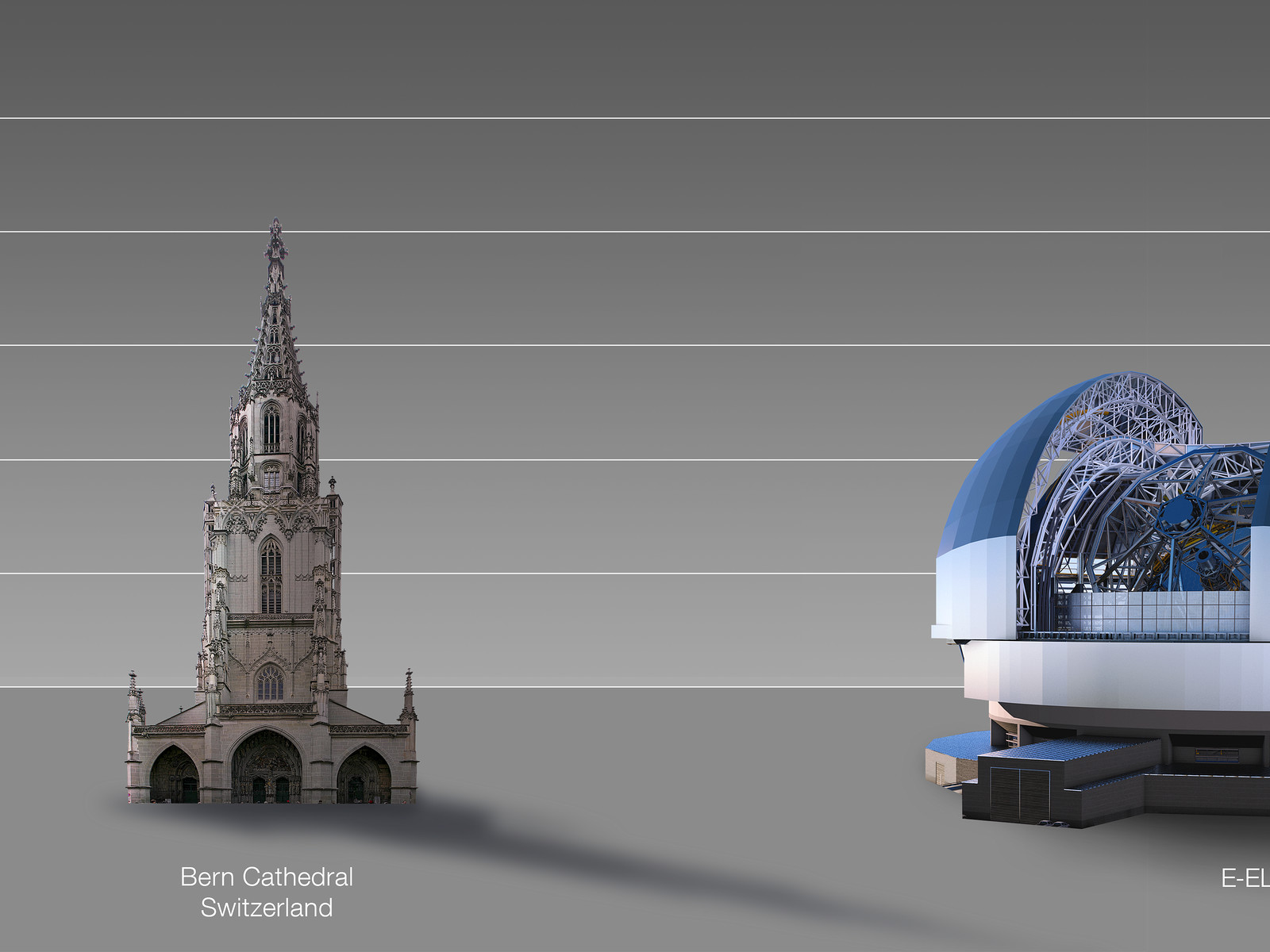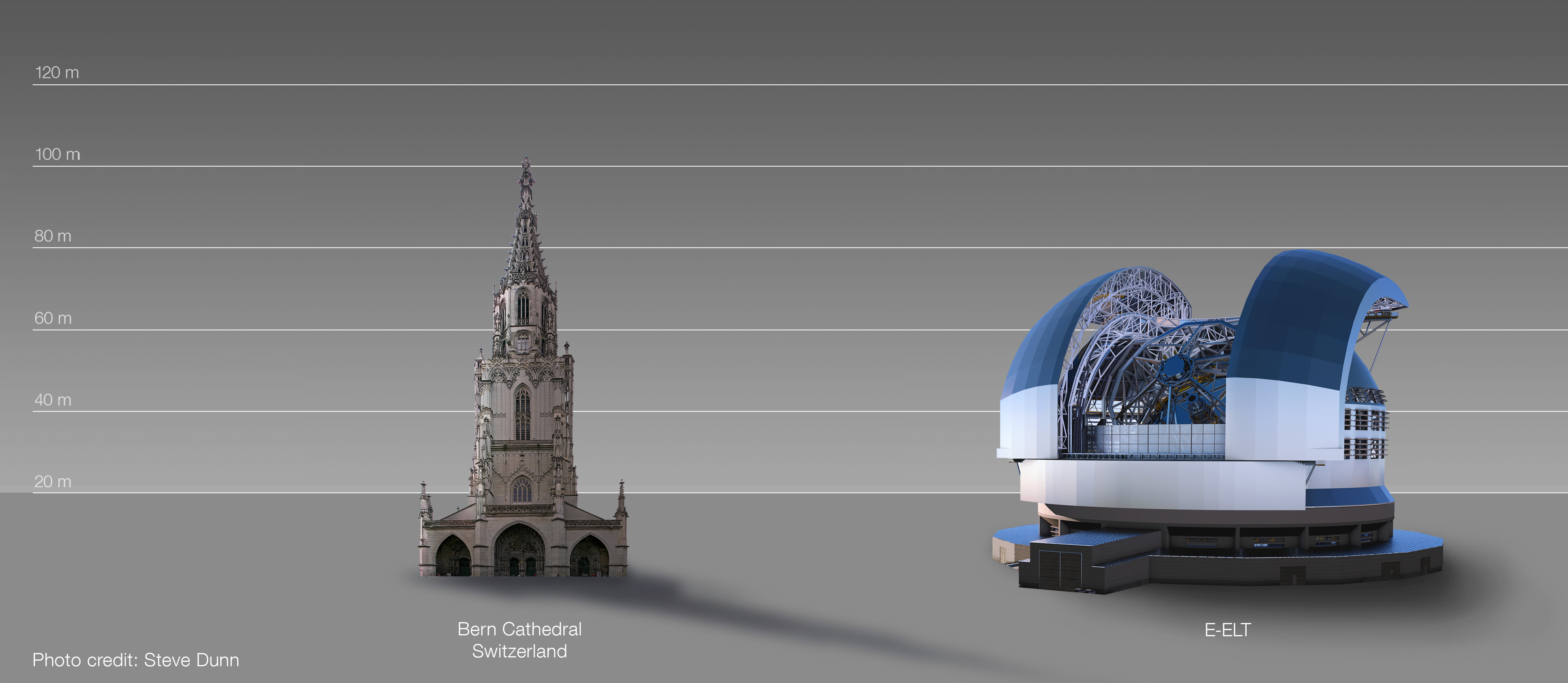 This artist's impression compares the ELT to Bern Cathedral, Switzerland.