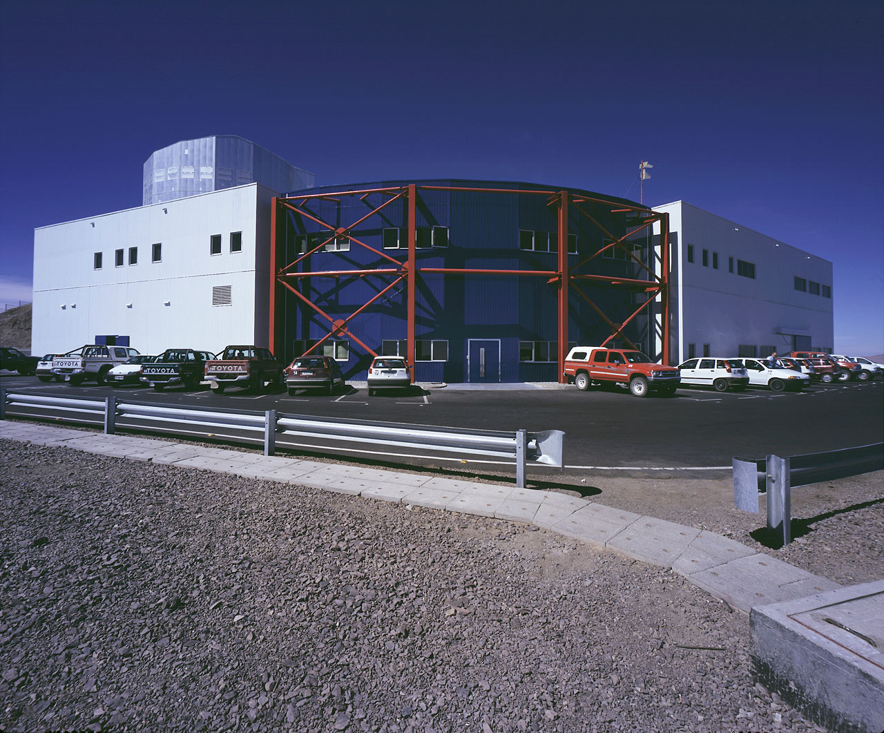 The Control Building is located on a "shelf" below the main observing platform at the top of the Paranal Mountain. It is the true hub of the Paranal Observatory and it is from here that the VLT telescopes and instruments are controlled by the observing teams. Daytime maintenance routines are also carried out by the ESO engineers via the computer terminals and monitors here.