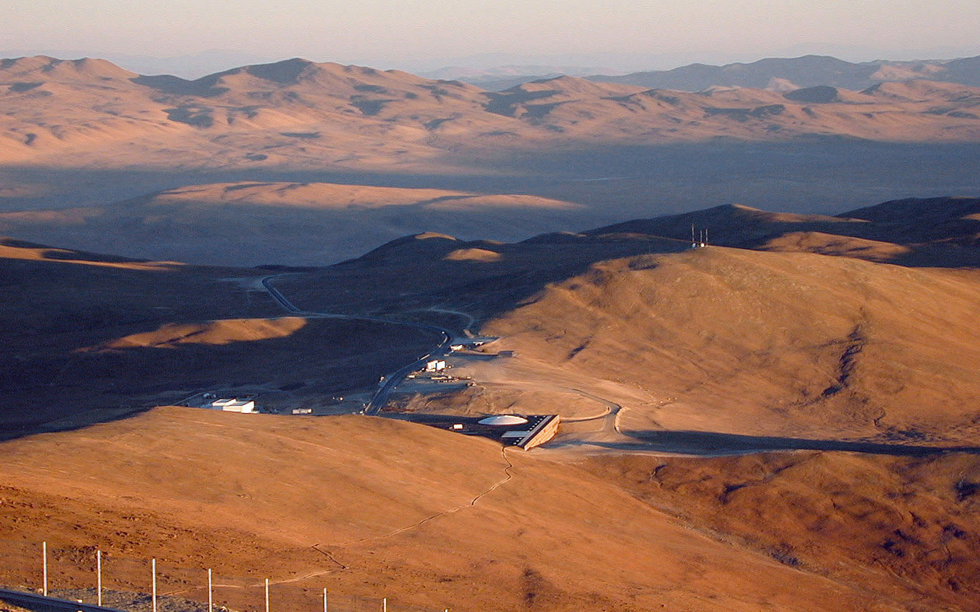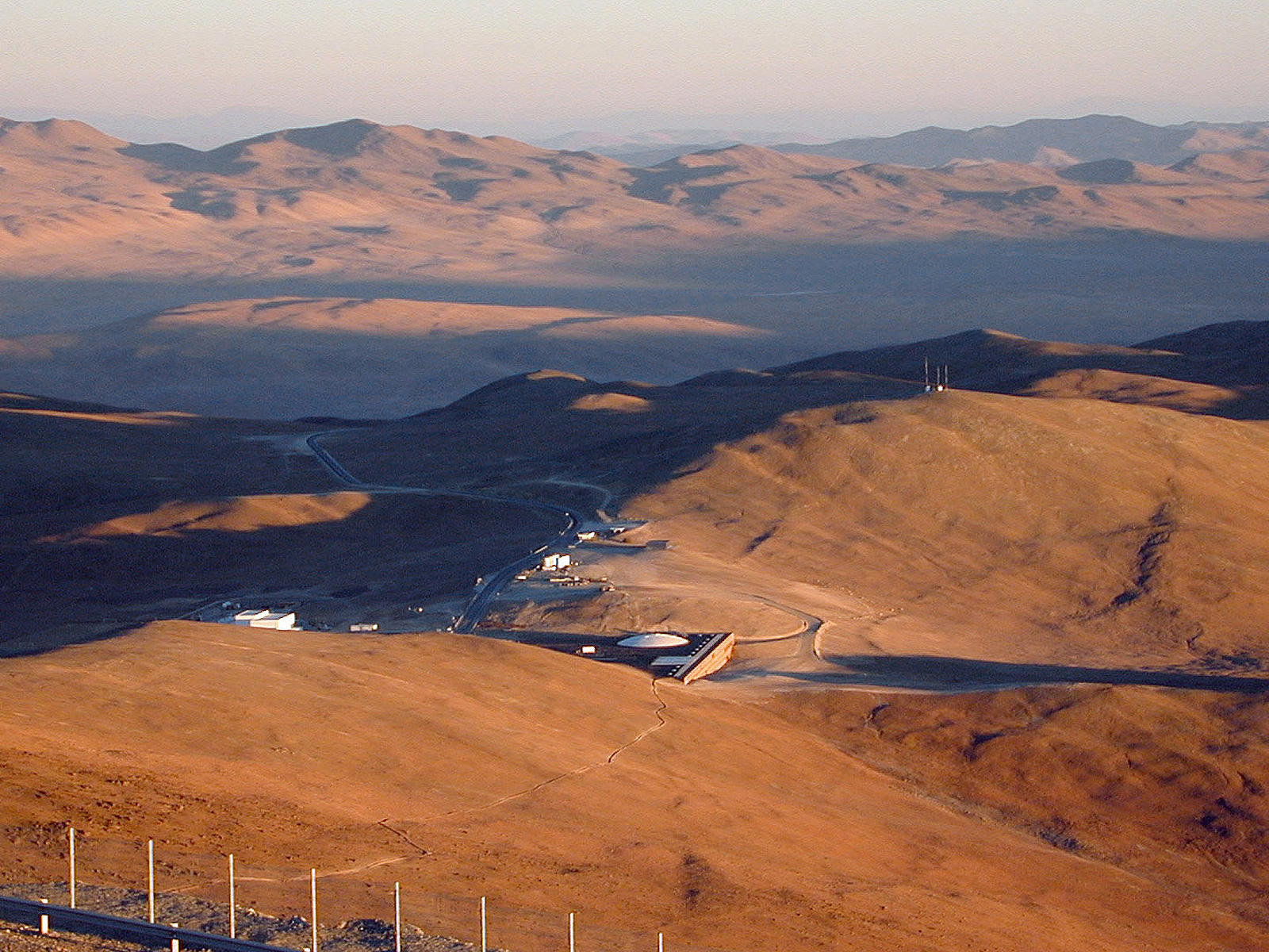 A view of the Residencia at sunset, as seen from the Telescope Platform at the top of the mountain. A narrow path connects the top with the Residencia and presents an inviting 45-minute downhill walk!