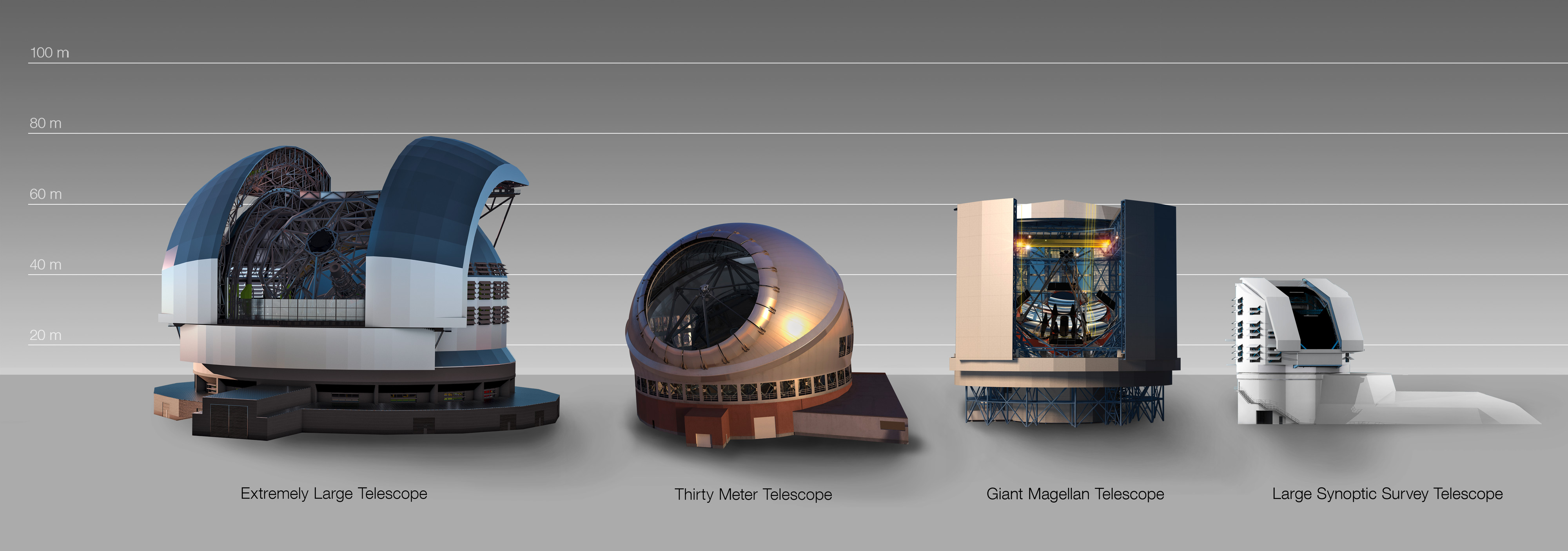 This graphic compares the dome of the Extremely Large Telescope with those of other major ground-based telescope facilities that are currently under construction.