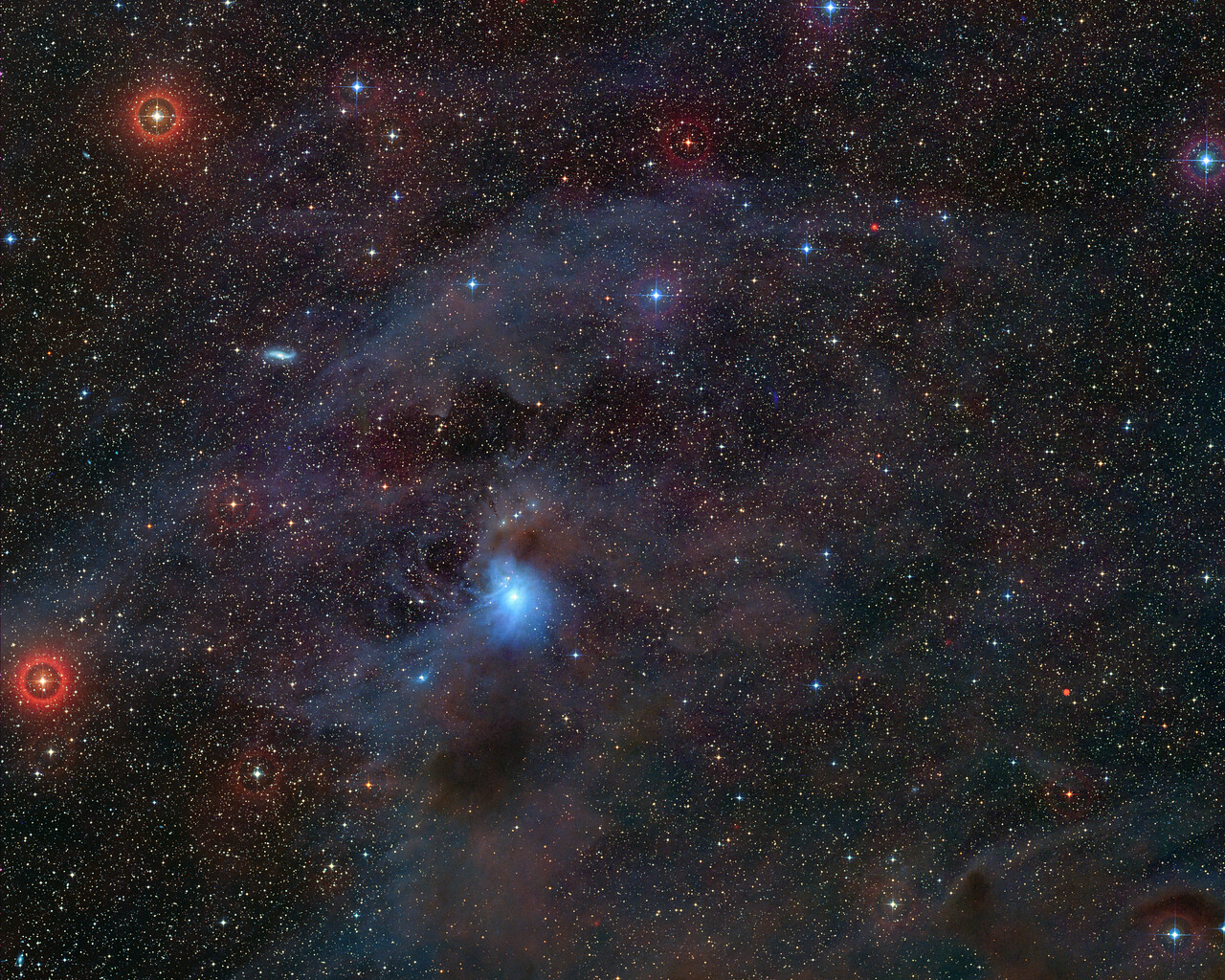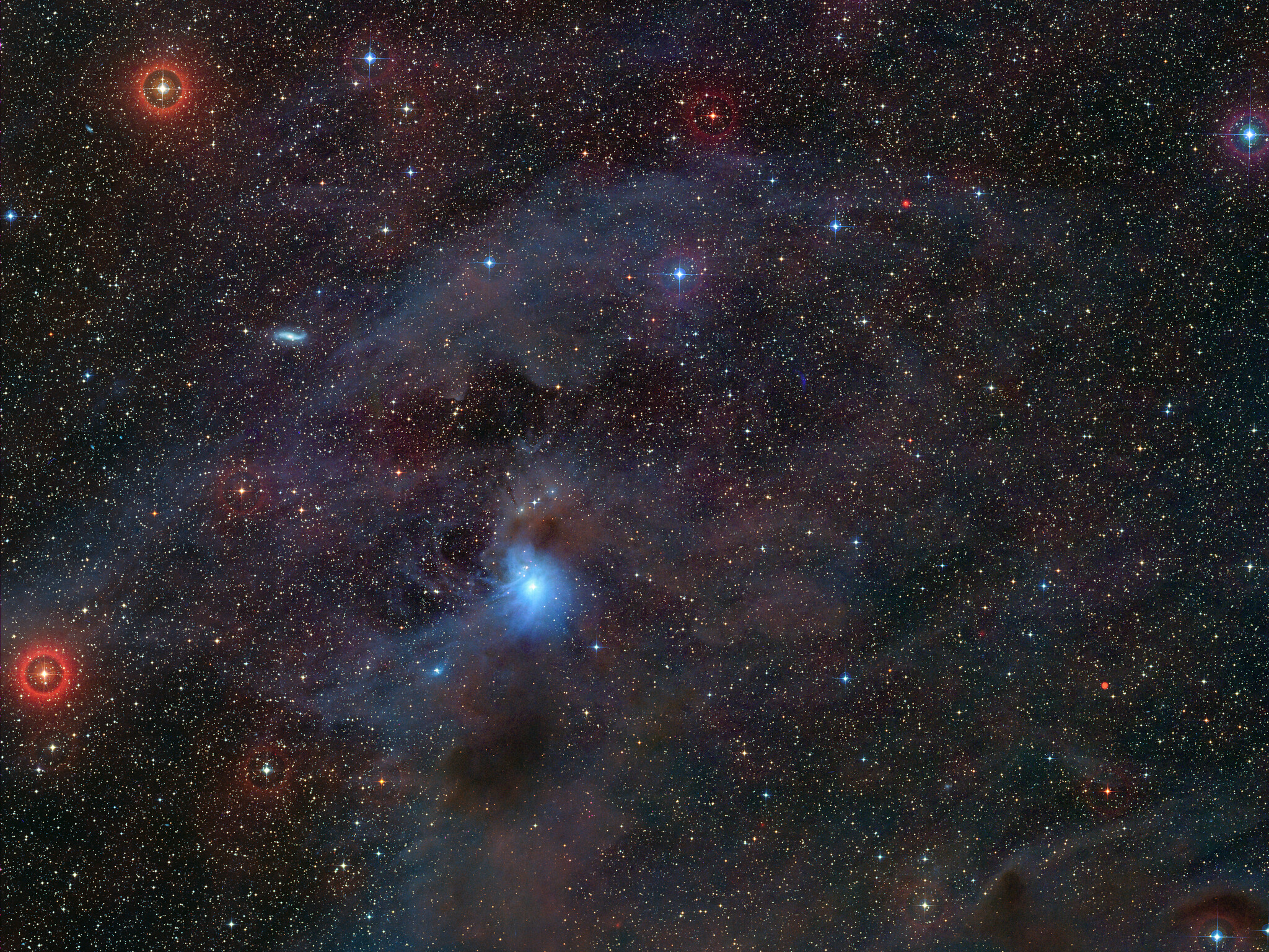 This visible-light image, part of the Digitized Sky Survey 2, shows the position in the sky of the rogue planet Cha 1107-7626. The planet (not visible here) is located exactly at the centre of the frame.
