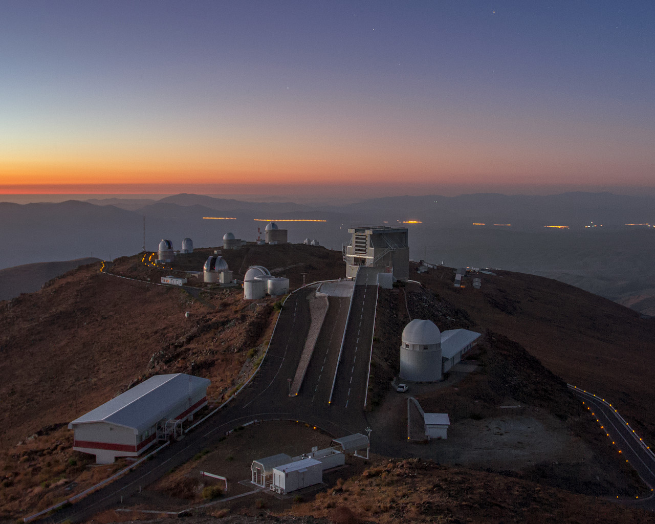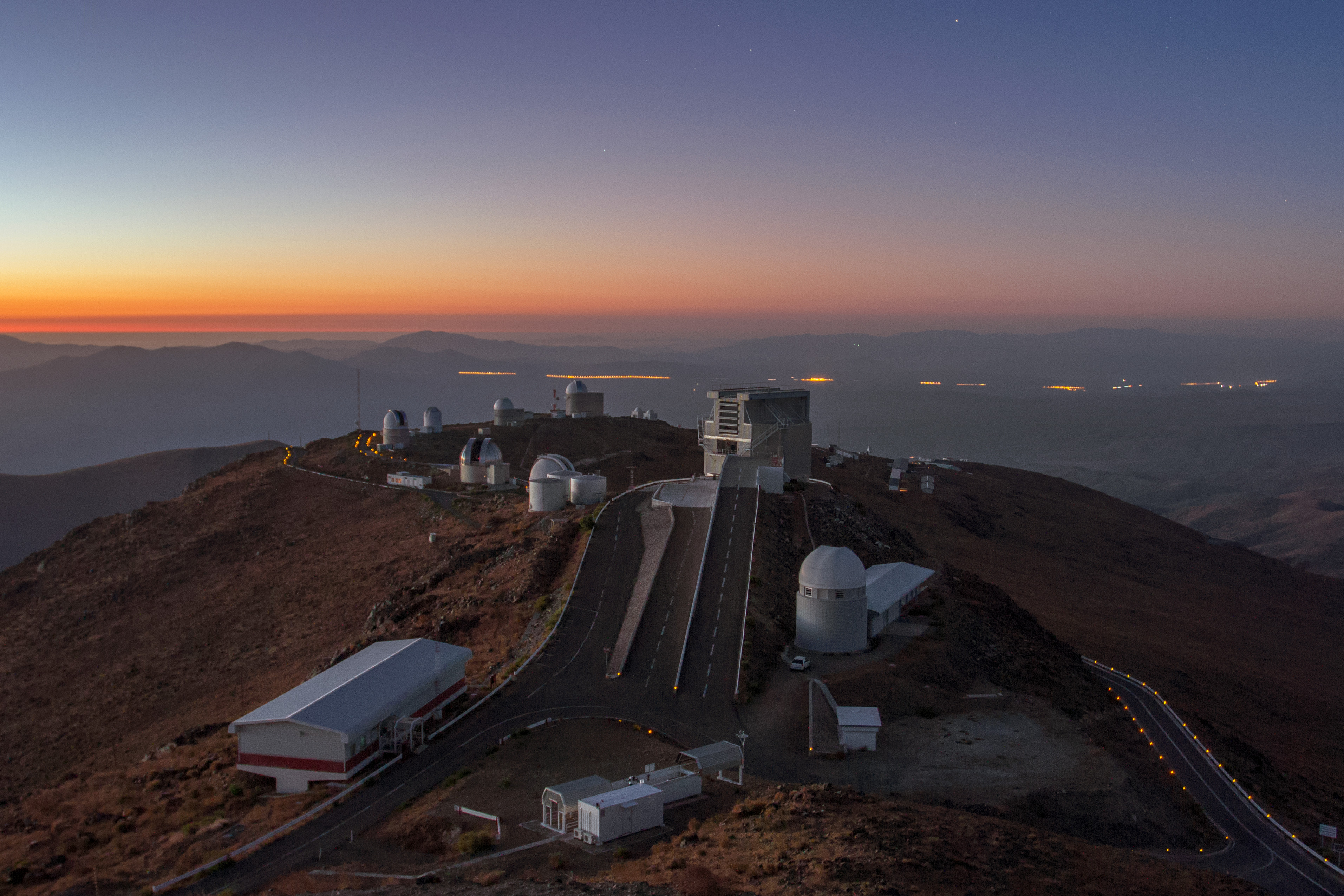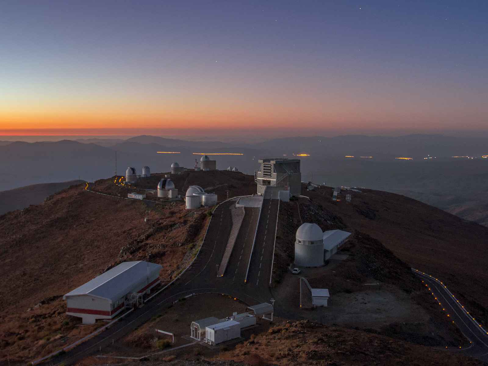 ESO's La Silla Observatory is home to numerous ESO telescopes and projects of ESO member states. Some of the telescopes visible in this photo are the MPG/ESO 2.2-metre telescope, the Danish 1.54-metre telescope, and now decommissioned ESO 1.52-metre telescope.
