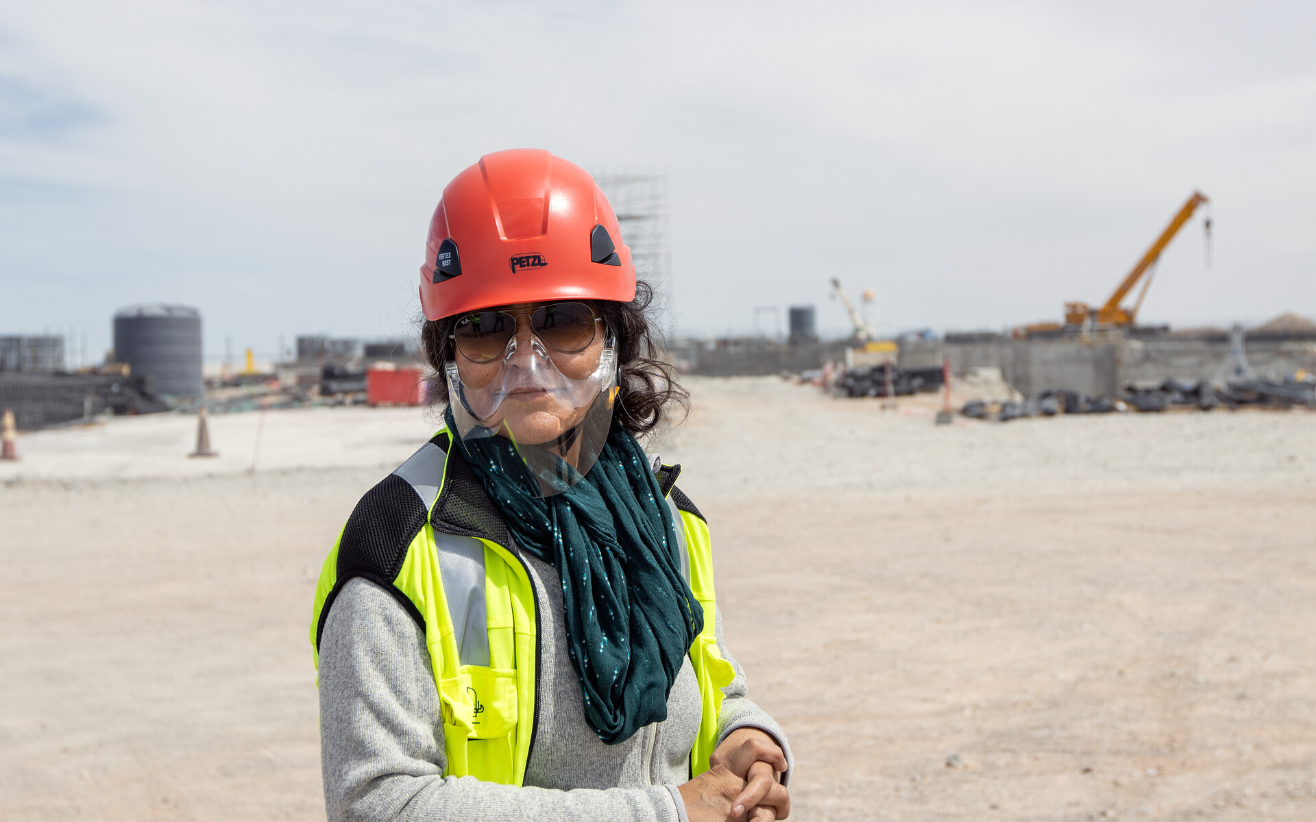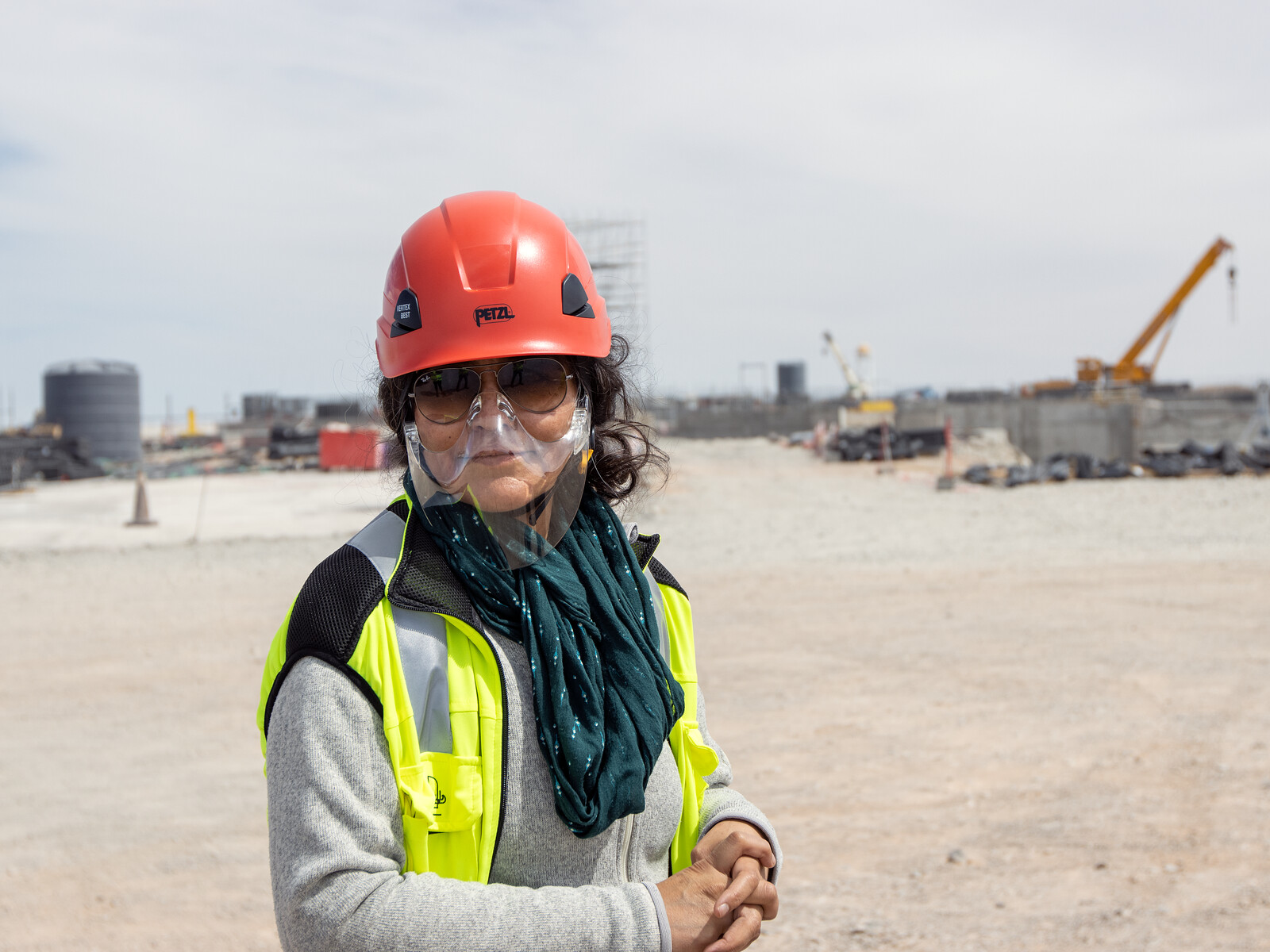 Susy Solis, ESO Armazones ELT Bilingual Technical Assistant, pictured at the top of Armazones, Chile during ELT construction work.