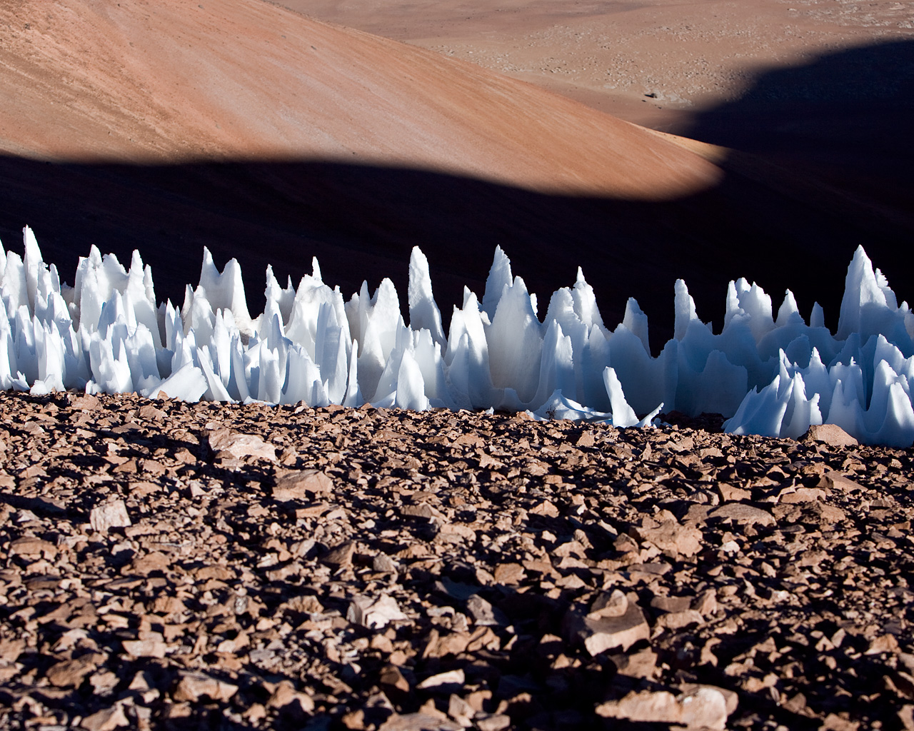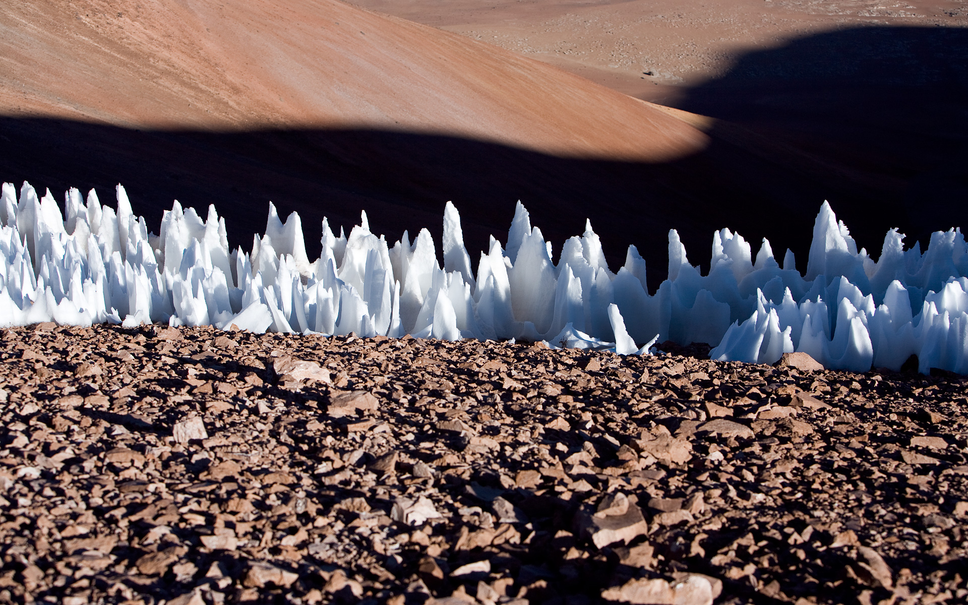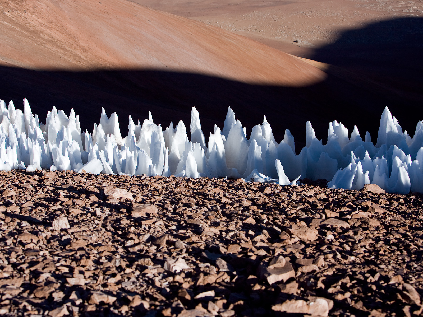 Penitentes ice formations at the southern end of the Chajnantor plain in Chile in 2005.