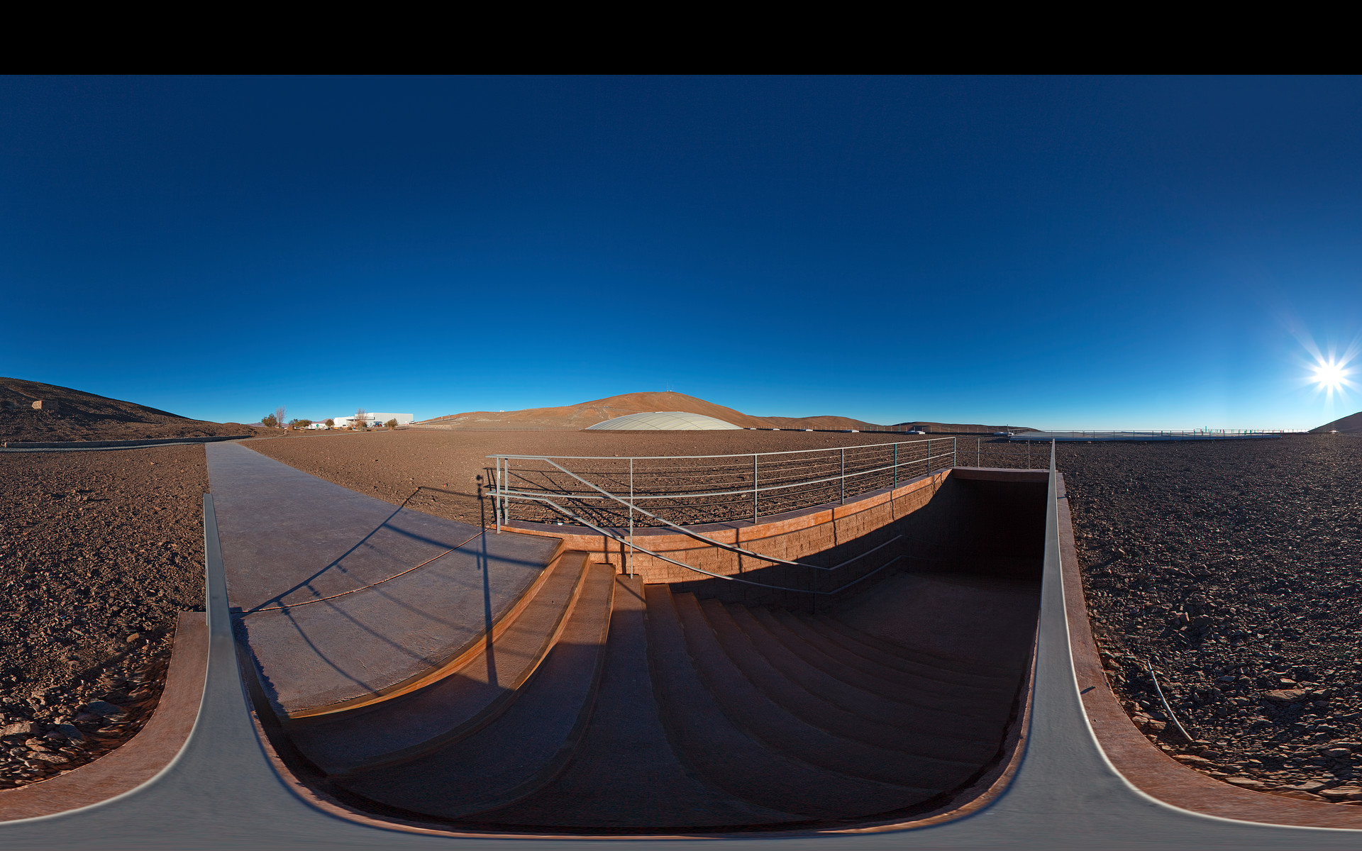 This 360 degree panorama shows the entrance to La Residencia at Paranal Observatory. Do you want to go downstairs and chill by the pool?