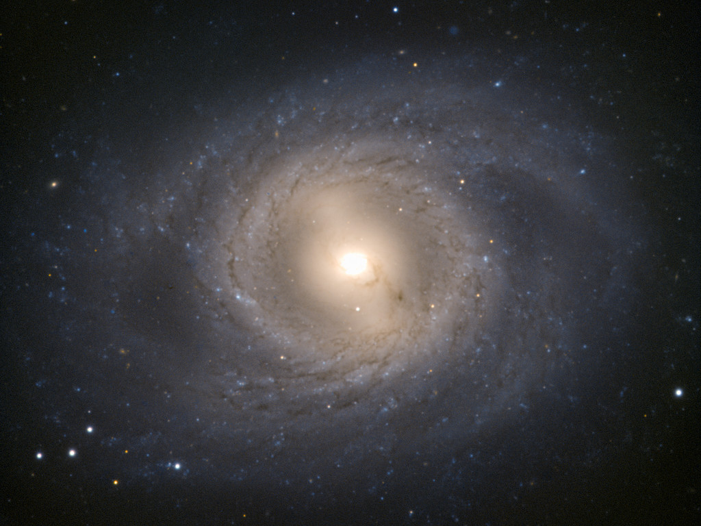 Another, perhaps even more striking, feature of Messier 95 is its blazing golden core. It contains a nuclear star-forming ring, almost 2000 light-years across, where a large proportion of the galaxy’s star formation takes place. This phenomenon occurs mostly in barred spiral galaxies such as Messier 95 and our home, the Milky Way.