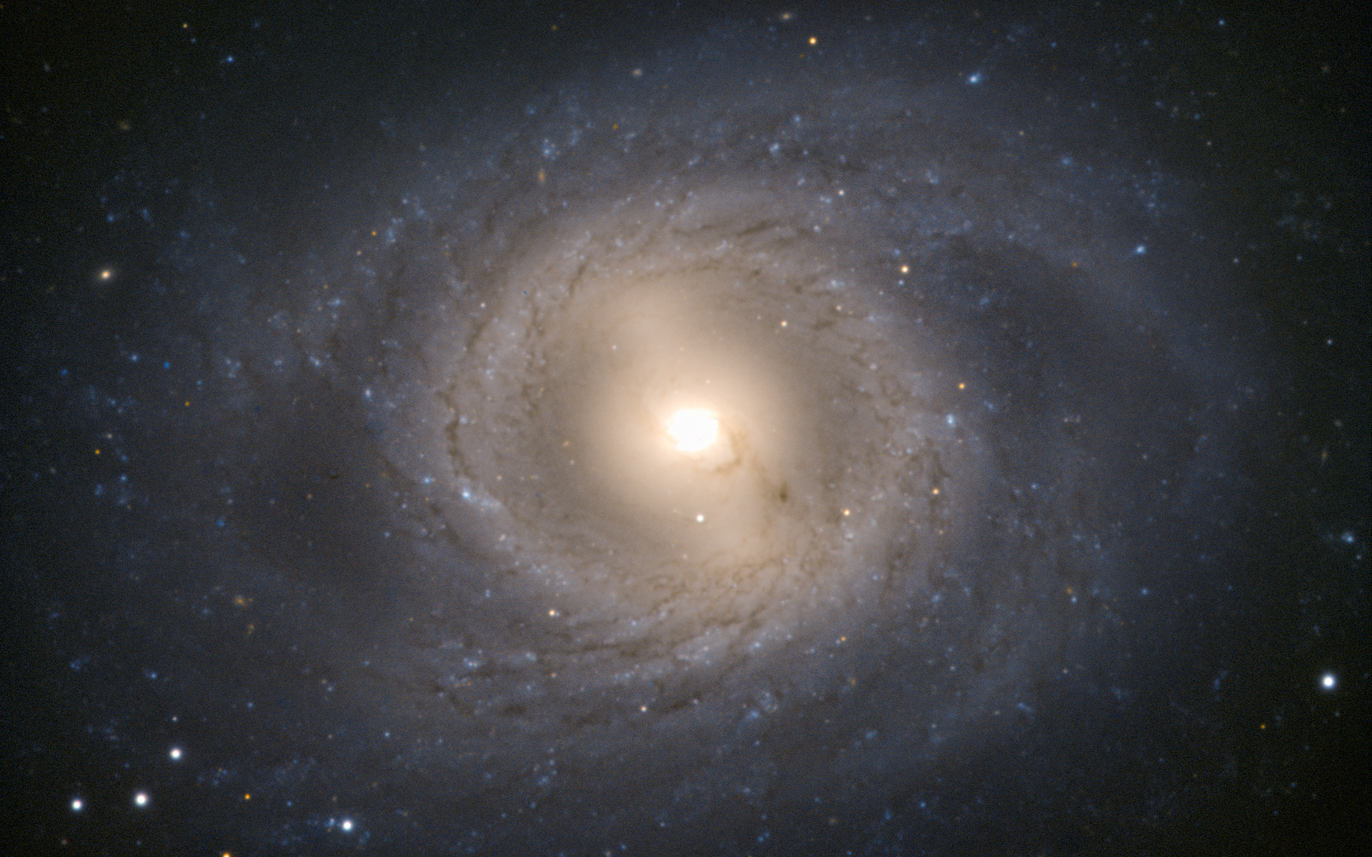 The Very Large Telescope has captured another member of the Leo I group of galaxies, in the constellation of Leo (The Lion). The galaxy Messier 95 stands boldly face-on, offering an ideal view of its spiral structure. The spiral arms form an almost perfect circle around the galactic centre before they spread out, creating a mane-like effect of which any lion would be proud.