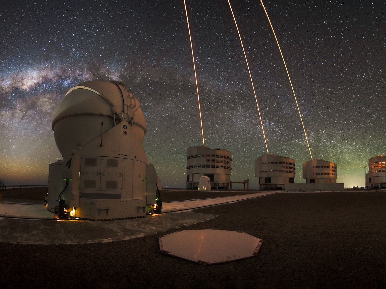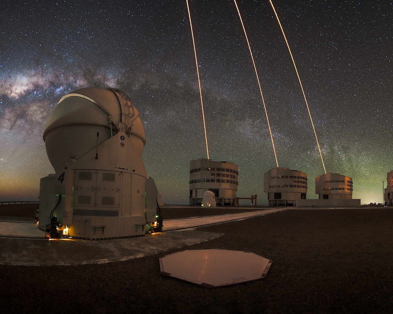Name:Auxiliary Telescopes, Laser Guide Star, Milky Way, VLT Unit Telescopes