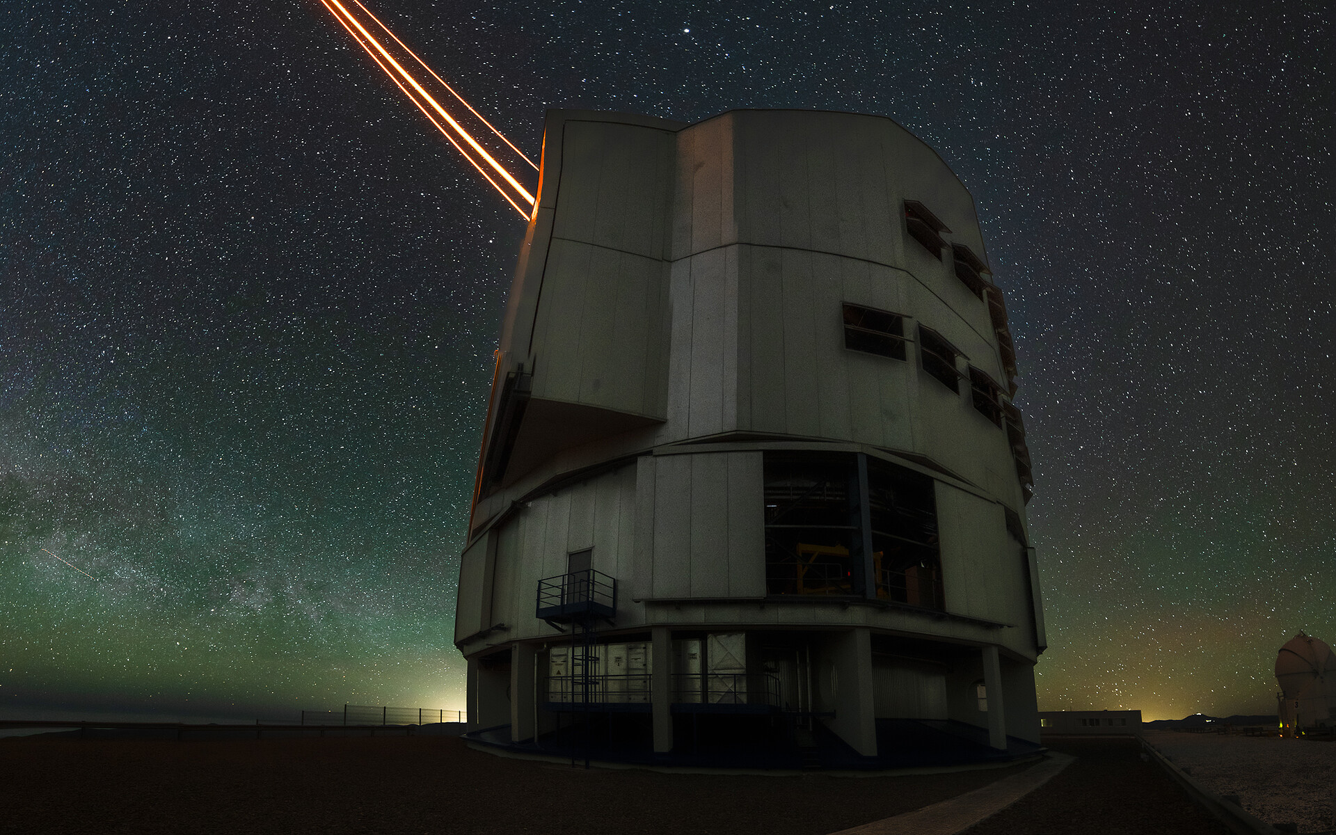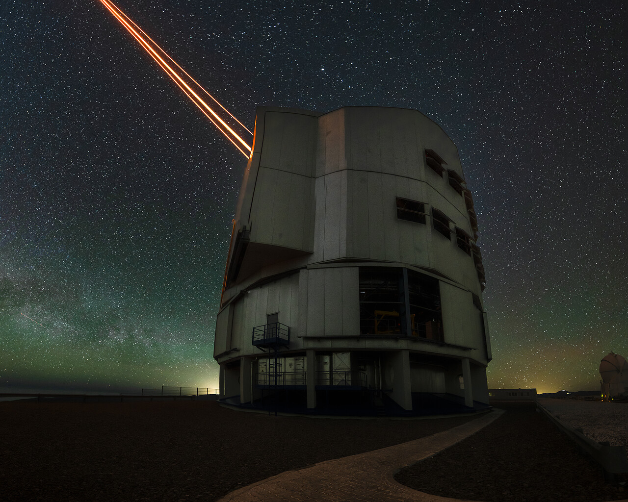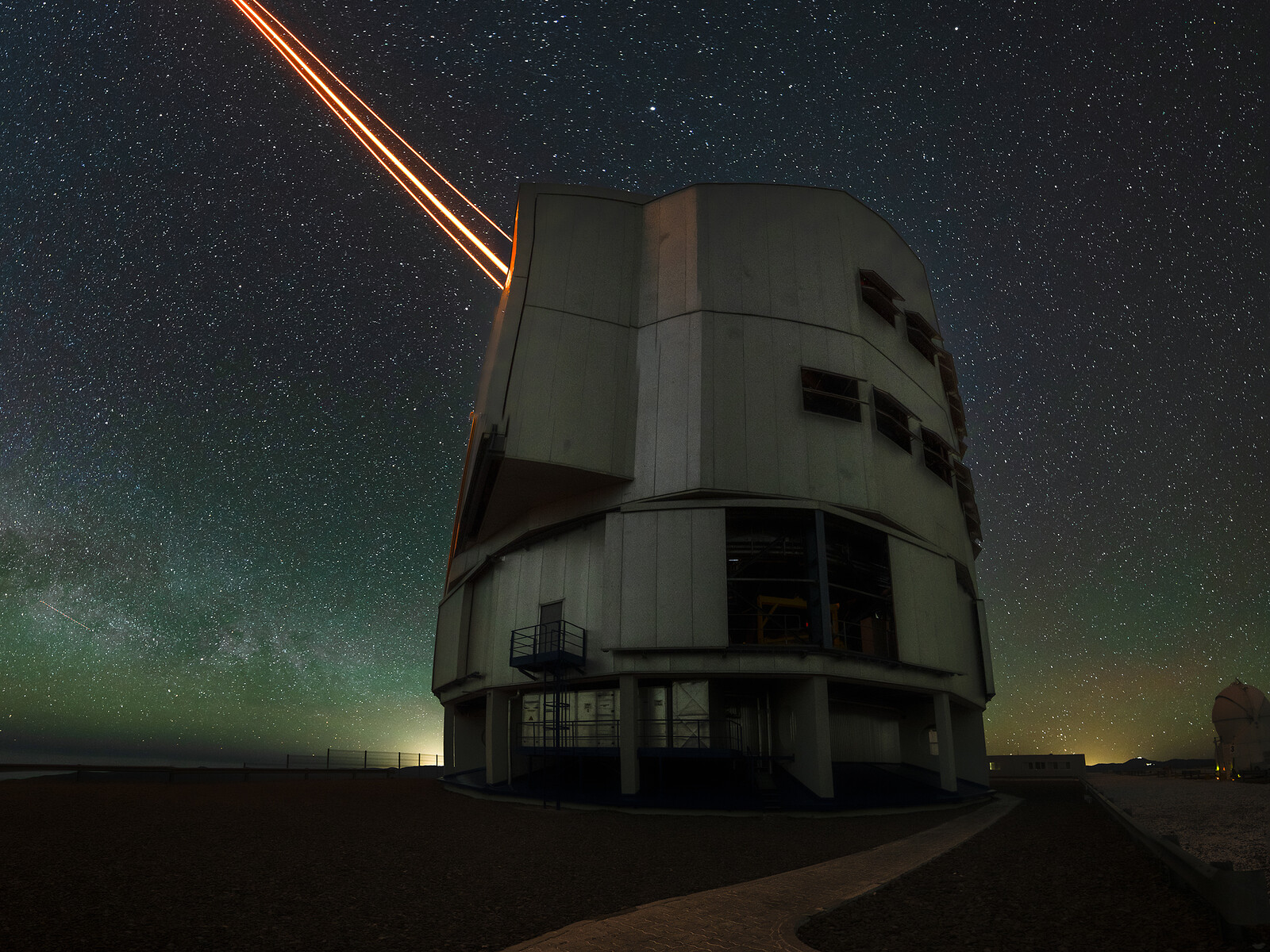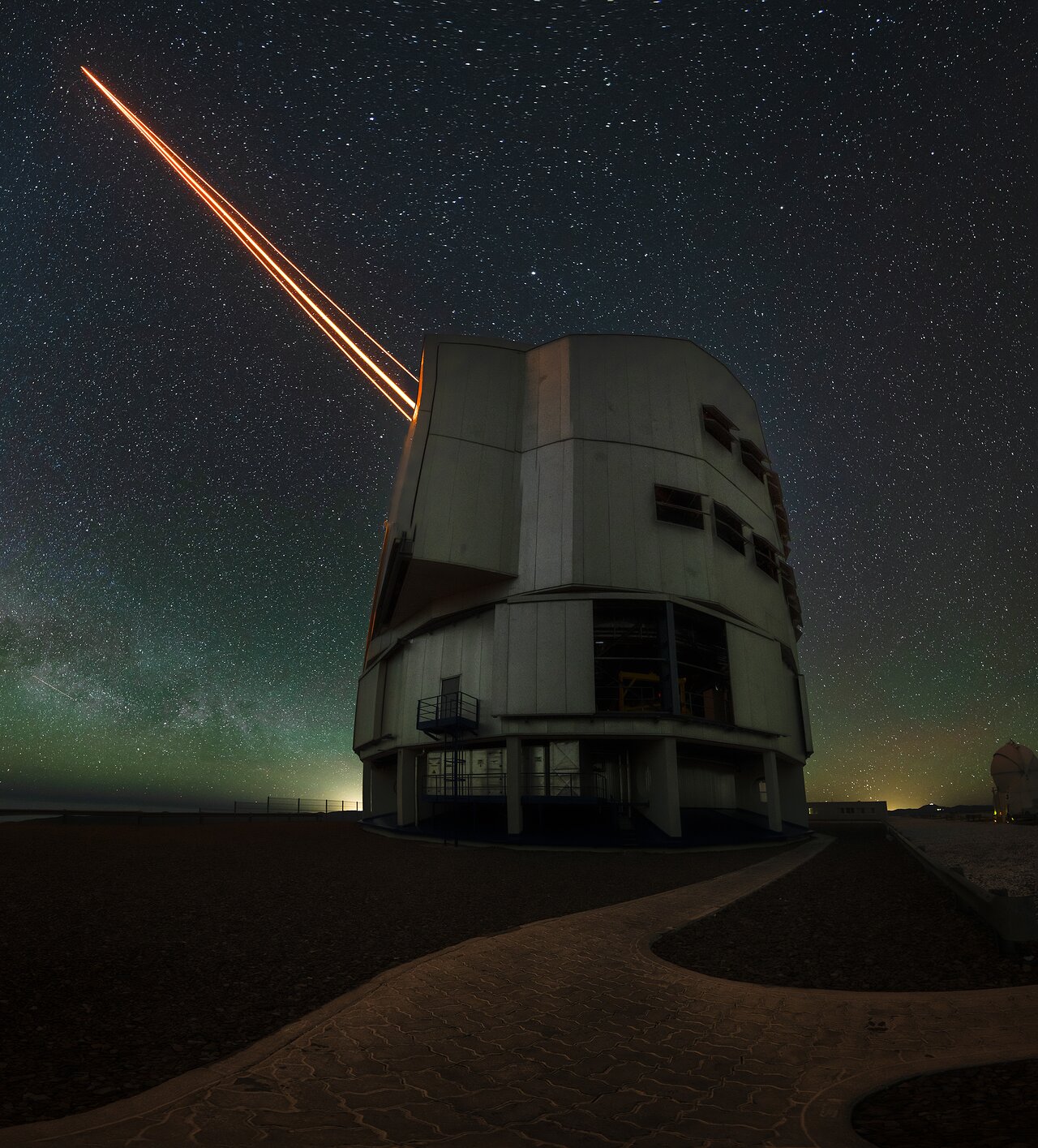 The VLT comprises four Unit Telescopes, each with an 8.2 m mirror. All four UT domes are as big as a family house, keeping the telescope safe and sound from all environmental conditions. But despite their similarities, Yepun is special, as it is the only UT with a total of four lasers.