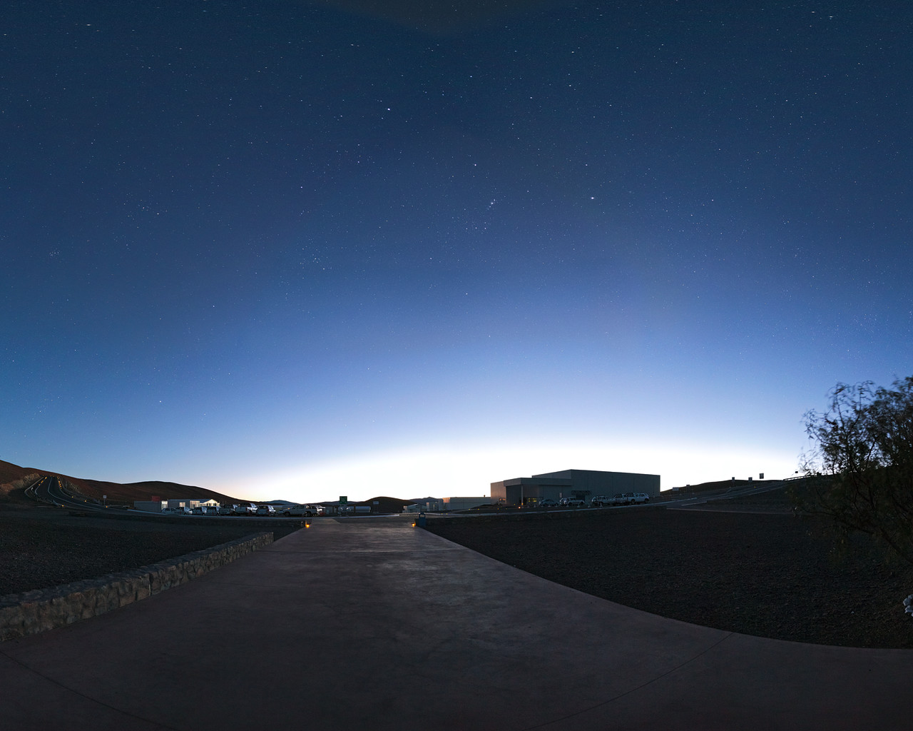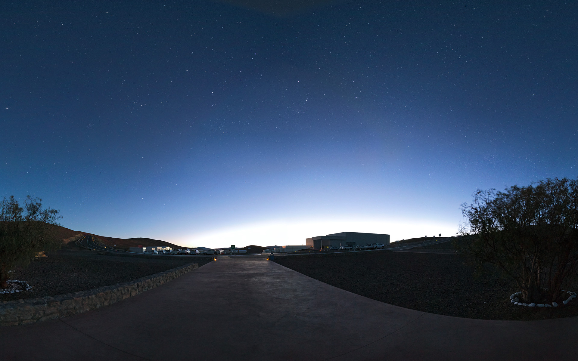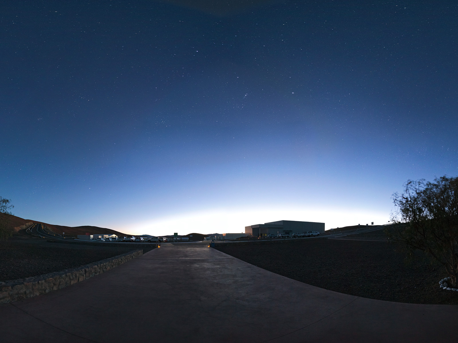 This panorama reveals the quietude at the Paranal base camp at dawn.