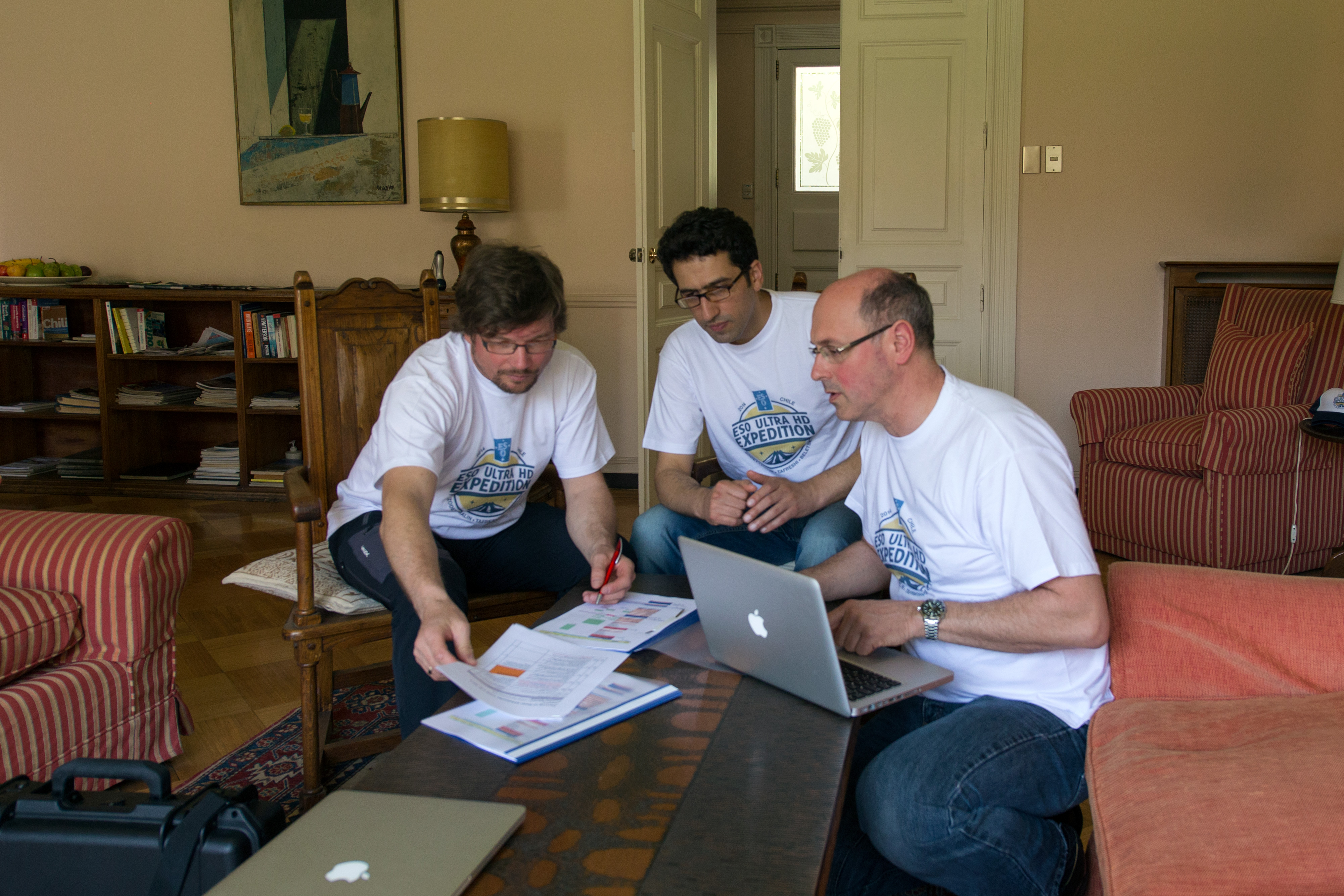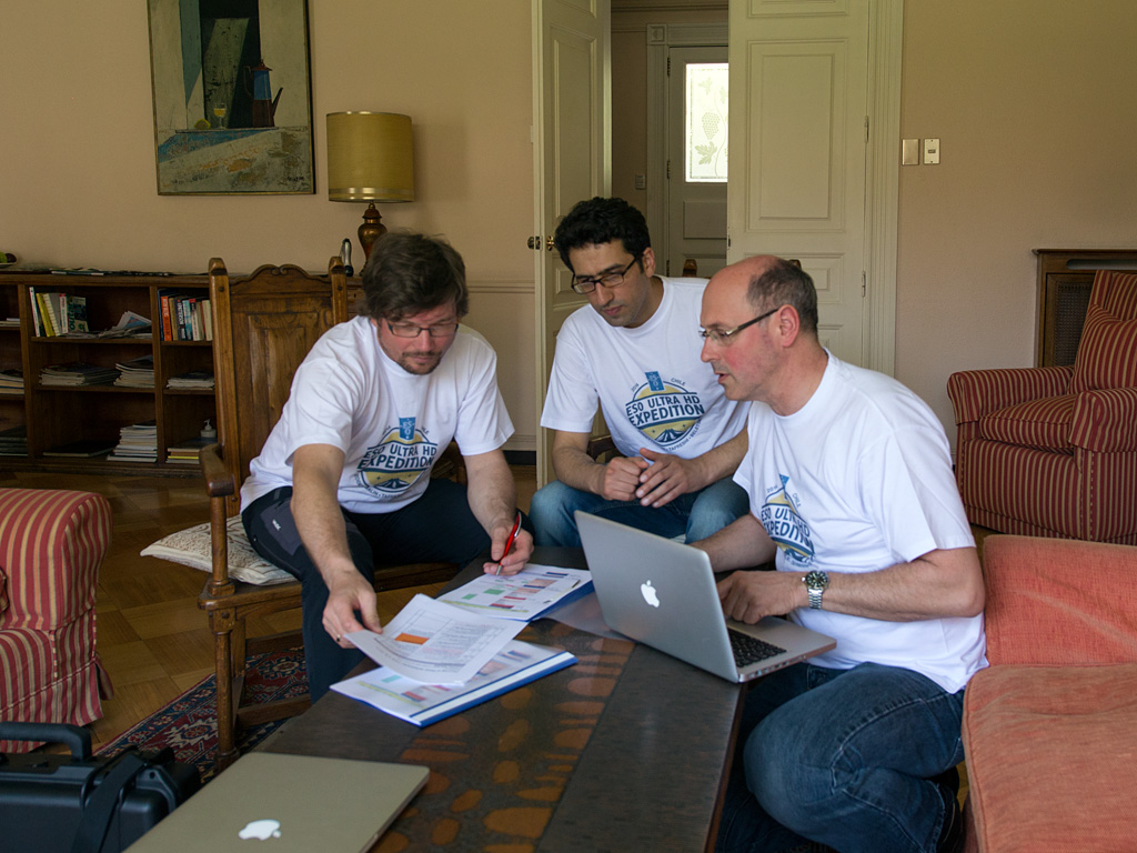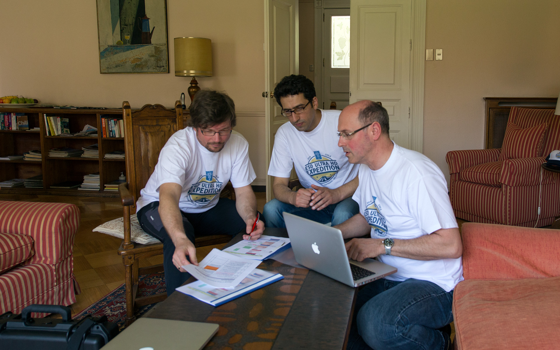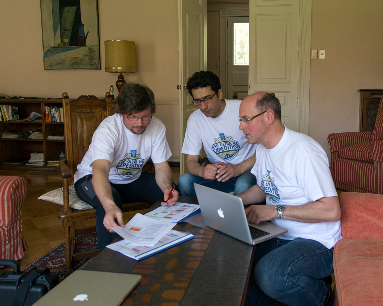 Babak Tafreshi, Christoph Malin and Herbert Zodet in the ESO Guesthouse on Day 1 of the ESO Ultra HD Expedition.