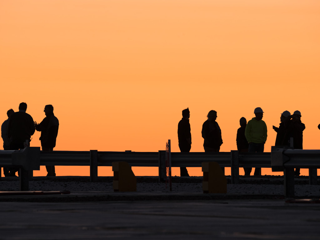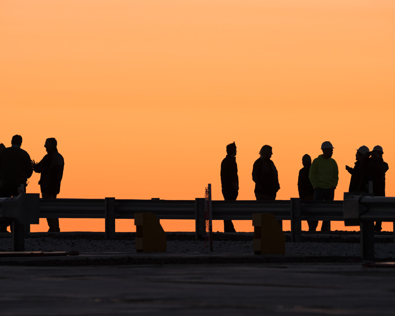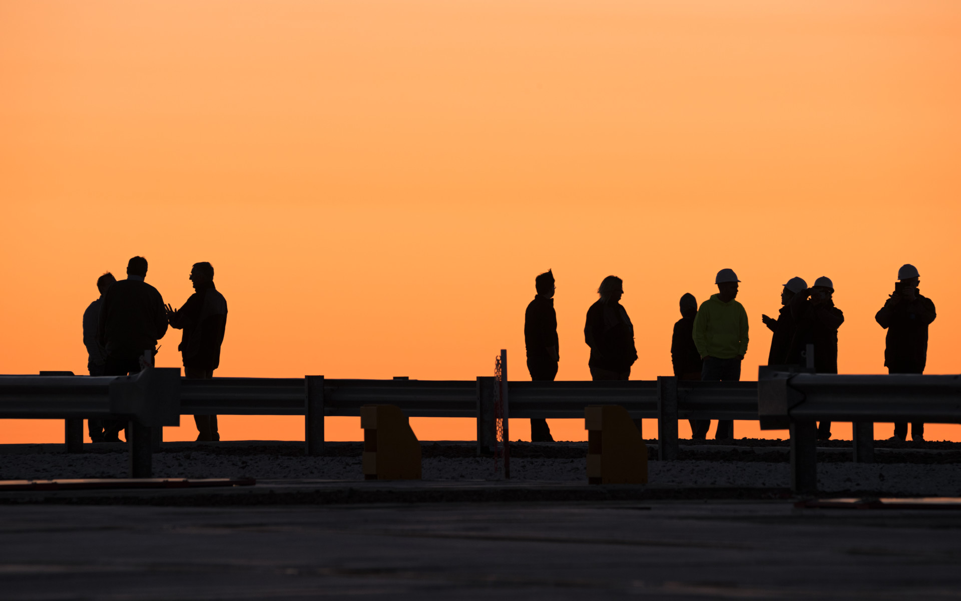 Taking a break from observing the Universe with ESO's Very Large Telescope at Paranal Observatory in Chile, the astronomers and engineers form a perfect silhouette against the sky filled with deep orange sunlight.