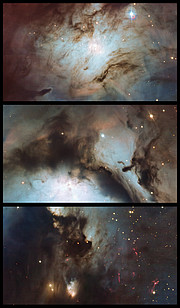 Op de foto zijn naast de reflectienevel nog allerlei andere opvallende structuren te zien. Van linksboven naar rechtsonder loopt een brede band van stof die het licht van achtergrondsterren tegenhoudt. Rechtsonder zijn verder nog tal van merkwaardige roze vlekjes en streepjes te zien: deze worden veroorzaakt door materiebundels die door pasgevormde sterren worden uitgestoten. De jonge sterren zelf zijn nog verscholen in het stof.