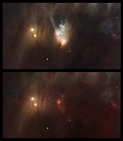 Opmerkelijk genoeg is dit nevelcomplex de afgelopen tien jaar aanzienlijk veranderd. In februari 2004 maakte de ervaren amateurastronoom Jay McNeil met een 75 mm telescoop een foto van dit hemelgebied en ontdekte daarop tot zijn verrassing een heldere nevel – de opvallende waaiervormige structuur bijna onderaan – die op eerdere foto’s niet te zien was. Dat object, dat nu bekendstaat als MacNeils Nevel, blijkt een sterk veranderlijke reflectienevel rond een jonge ster te zijn.
