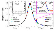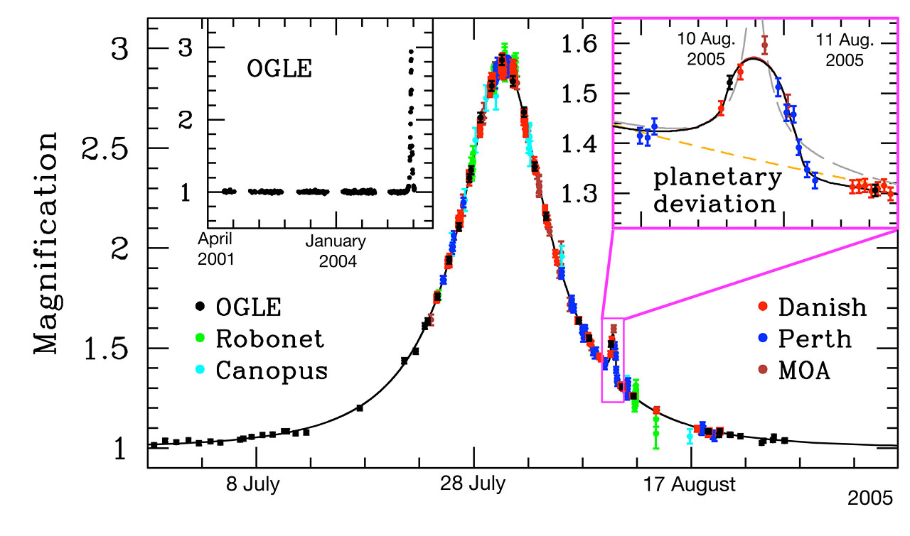 [1] This result is a joint effort of three independent microlensing campaigns: PLANET/RoboNet, OGLE, and MOA, involving a total of 73 collaborators affiliated with 32 institutions in 12 countries (France, United Kingdom, Poland, Denmark, Germany, Austria, Chile, Australia, New Zealand, United States of America, South Africa, and Japan).