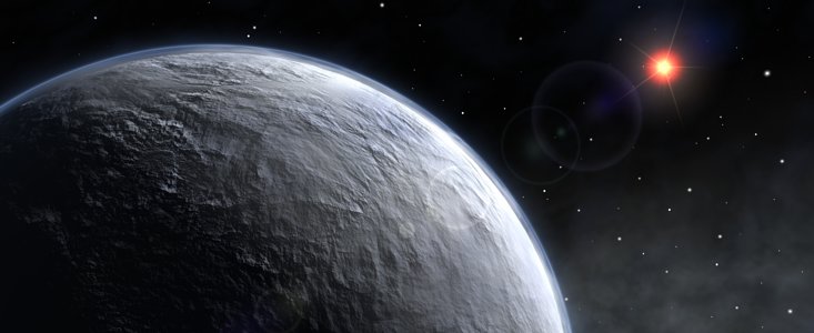 Its relatively cool parent star and large orbit implies that the likely surface temperature of the planet is 220 degrees Centigrade below zero, too cold for liquid water. It is likely to have a thin atmosphere, like the Earth, but its rocky surface is probably deeply buried beneath frozen oceans. It may therefore more closely resemble a more massive version of Pluto, rather than the rocky inner planets like Earth and Venus.
