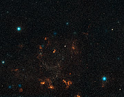 This image is a mosaic of four pictures from the Wide Field Imager on the MPG/ESO 2.2-metre telescope at the La Silla Observatory in Chile. The image covers a region of sky more than four times as large as the full Moon. The huge field of view of this camera makes it possible to see a very wide range of objects in the LMC in a single picture, although only a small part of the entire galaxy can be included. Dozens of clusters of young stars can be seen as well as traces of glowing gas clouds. Huge numbers of faint stars fill the image from edge to edge and in the background, more galaxies, far beyond the LMC, are visible.