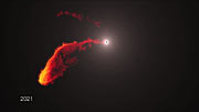 The cloud’s edges are already starting to shred and disrupt and it is expected to break up completely over the next few years [4]. The astronomers can already see clear signs of increasing disruption of the cloud over the period between 2008 and 2011.