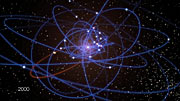 Over the last seven years, the speed of this object has nearly doubled, reaching more than 8 million km/h. It is on a very elongated orbit [2] and in mid-2013 it will pass at a distance of only about 40 billion kilometres from the event horizon of the black hole, a distance of about 36 light-hours [3]. This is an extremely close encounter with a supermassive black hole in astronomical terms.