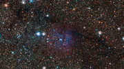 By chance this picture shows a perfect example of the surprises that can be revealed when imaging in the infrared. Apparently close to the Trifid in the sky, but in reality about seven times more distant [1], a newly discovered pair of variable stars has been found in the VISTA data. These are Cepheid variables, a type of bright star that is unstable and slowly brightens and then fades with time. This pair of stars, which the astronomers think are the brightest members of a cluster of stars, are the only Cepheid variables detected so far that are close to the central plane, but on the far side of the galaxy. They brighten and fade over a period of eleven days.