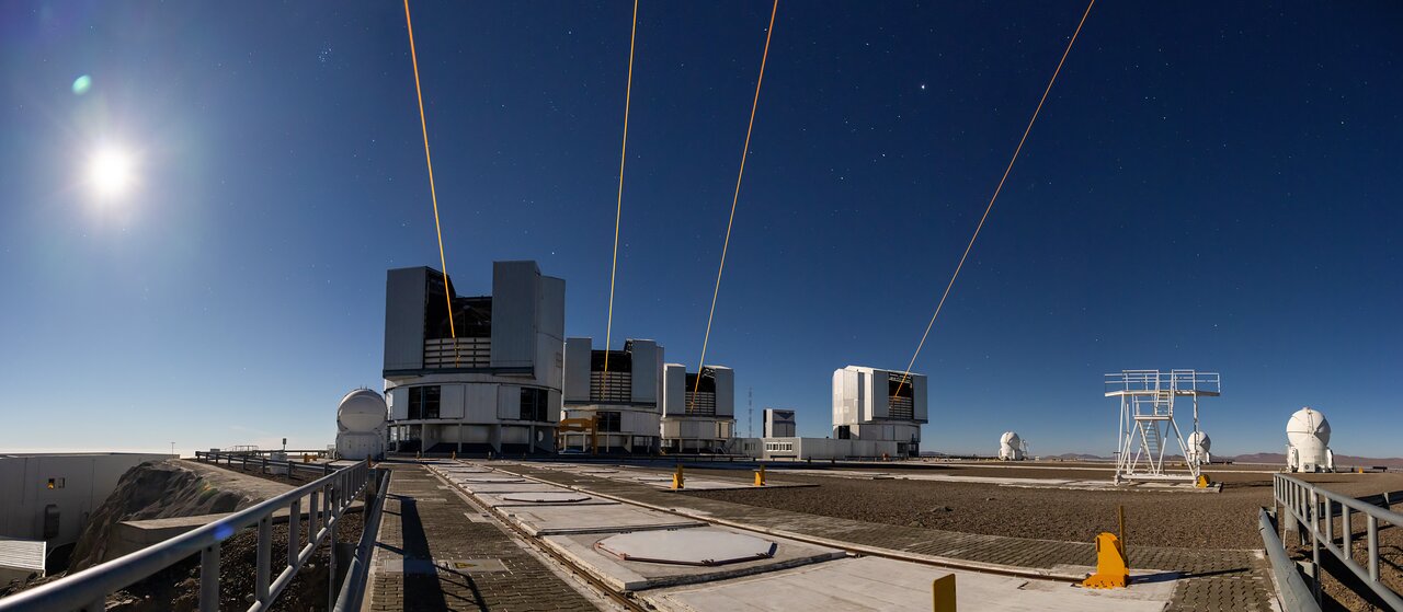The series of upgrades has been ongoing for a few years and includes revised adaptive-optics technology — a system to correct the blur caused by the Earth’s atmosphere — with advanced state-of-the-art sensors and deformable mirrors. Until now, for the VLTI, adaptive-optics corrections have been done by pointing to bright reference stars that need to be close to the target, limiting the number of objects we can observe. With the installation of a laser at each of the UTs, a bright artificial star is created 90 km above Earth’s surface, enabling the correction of atmospheric blur anywhere on the sky. This unlocks the whole southern sky to the VLTI and enhances its observing power dramatically.