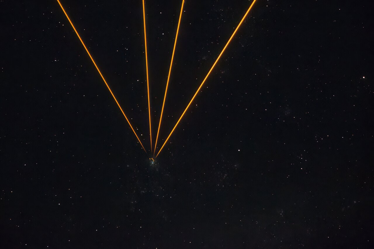 Last week, four lasers were projected into the skies above the European Southern Observatory’s (ESO’s) Paranal site in Chile. The lasers are each used to create an artificial star, which astronomers use to measure and then correct the blur caused by Earth's atmosphere. The striking launch of these lasers, one from each of the eight-metre telescopes at Paranal, is a significant milestone of the GRAVITY+ project — a large and complex upgrade to ESO’s Very Large Telescope Interferometer (VLTI). GRAVITY+ unlocks a greater observing power and a much wider sky coverage for the VLTI than previously possible.